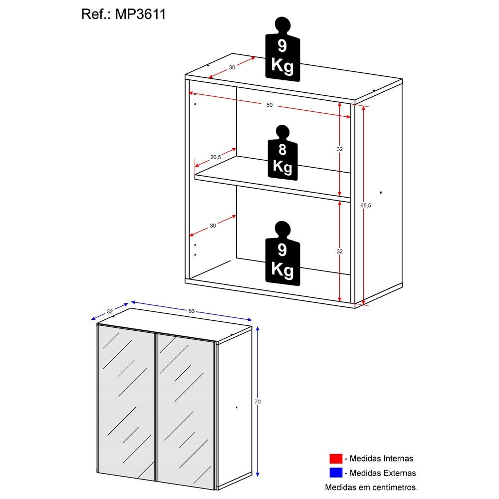 Aparador Cantinho do Café com Espelho 2 Portas Multimóveis Branco