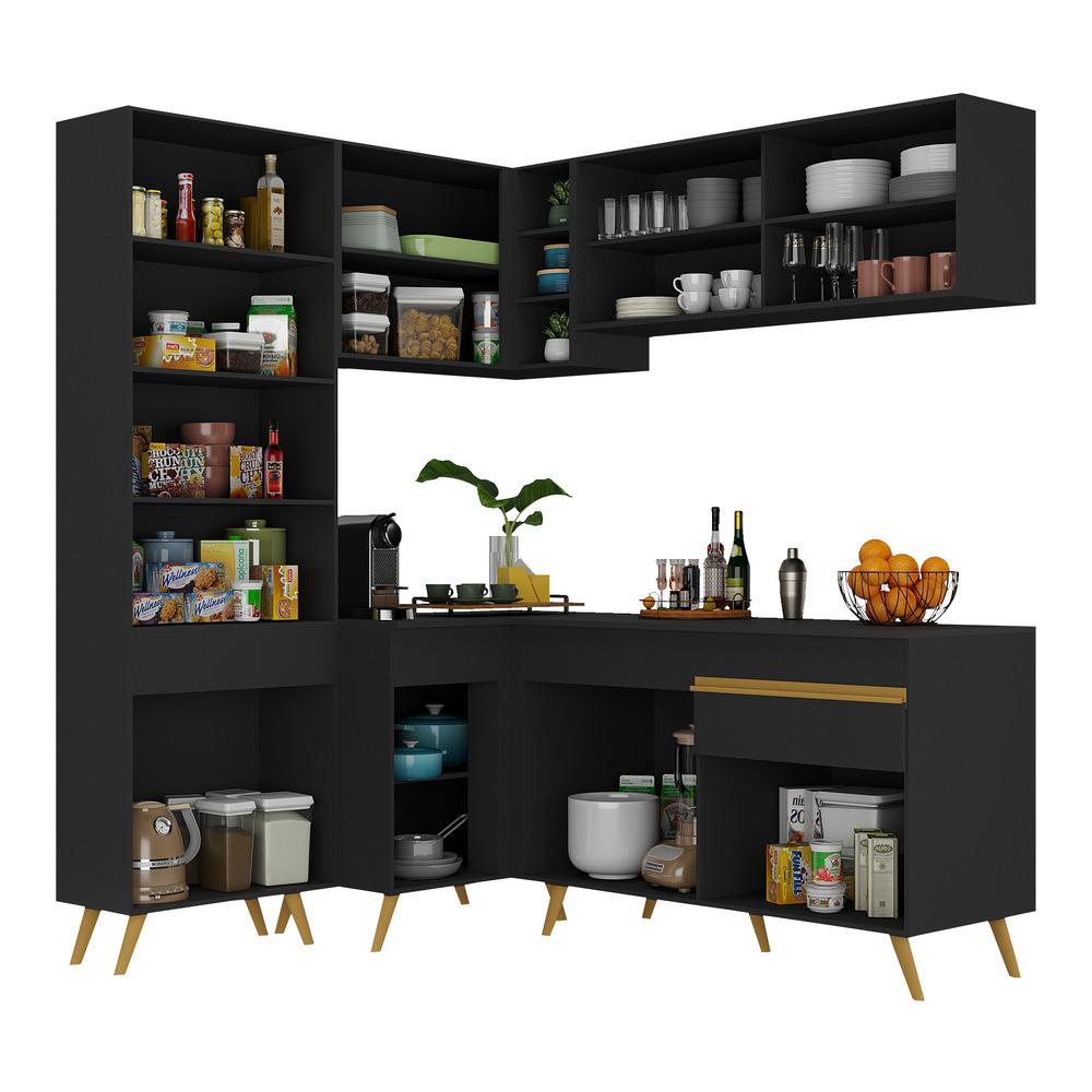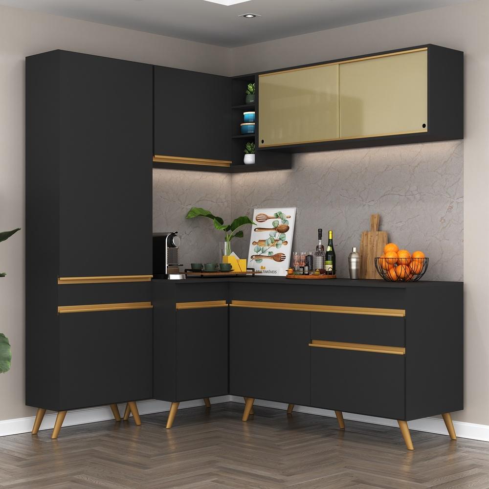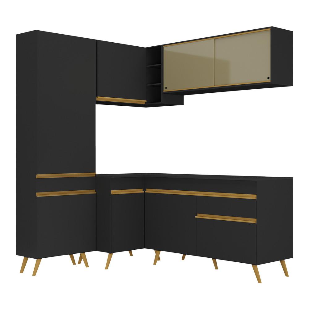 Cozinha Completa de Canto Veneza GB Multimóveis MP2054 com Armário e Balcão Preta