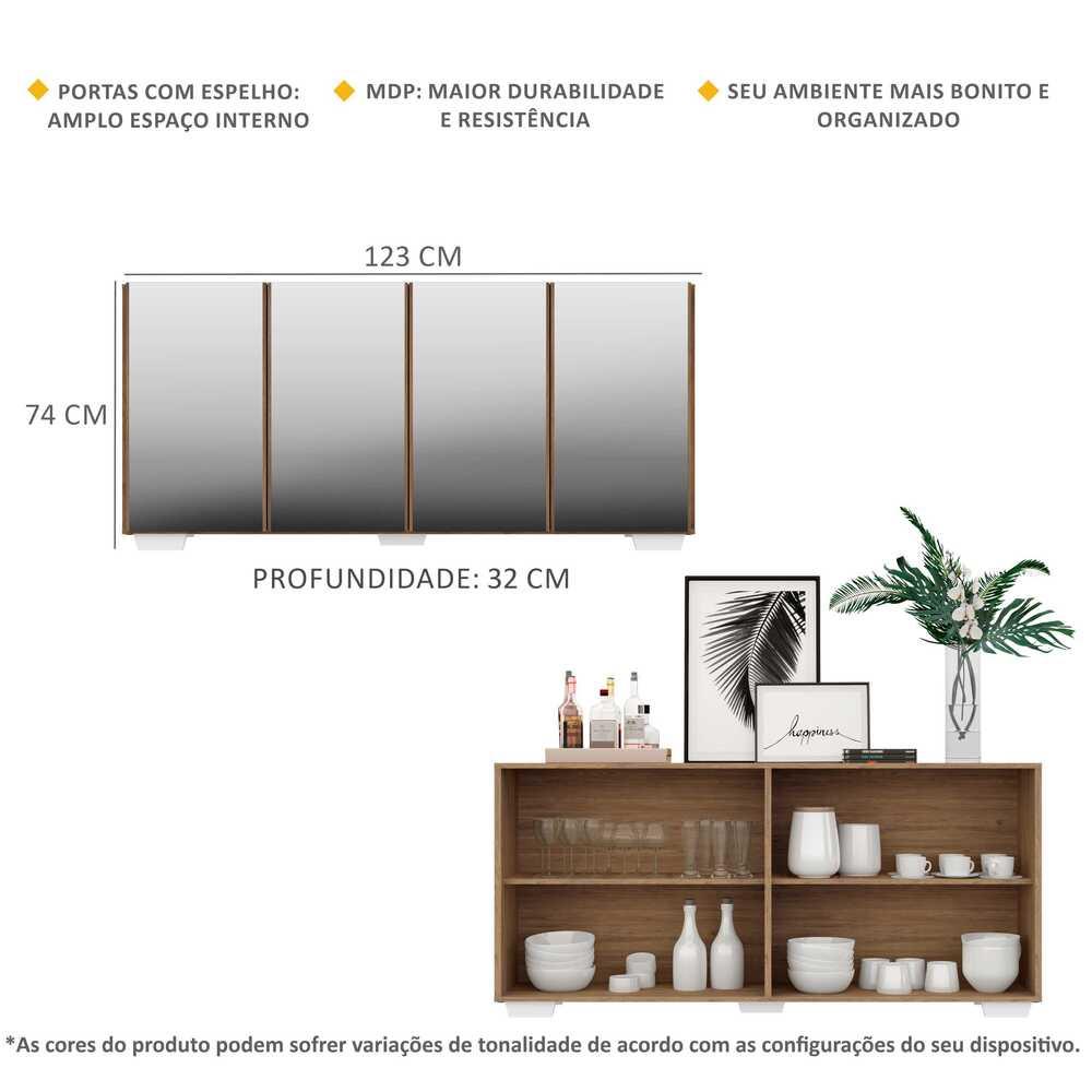 Aparador Buffet 4 portas c/ Espelho e Pés Quadrados Vegas Multimóveis Rustic/Branco