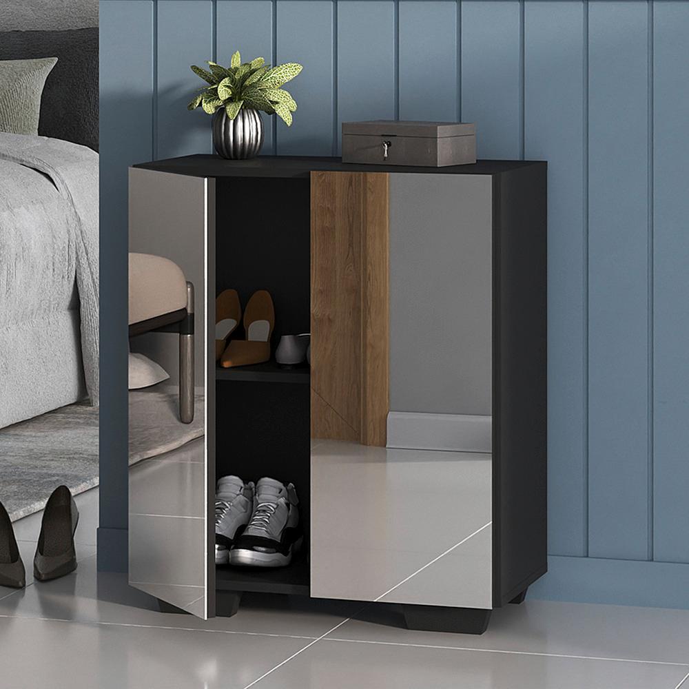 Sapateira 2 Portas com Espelho Nina Multimóveis Preta