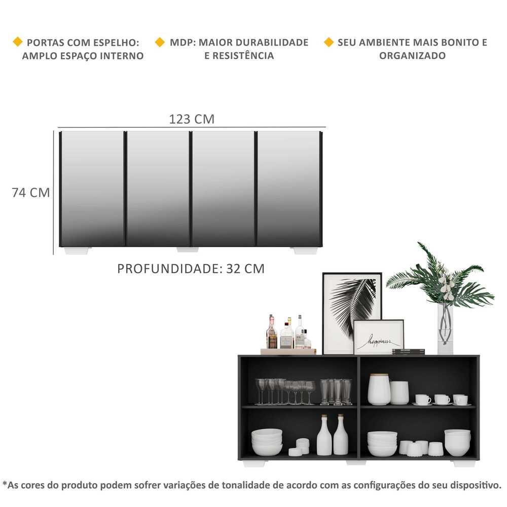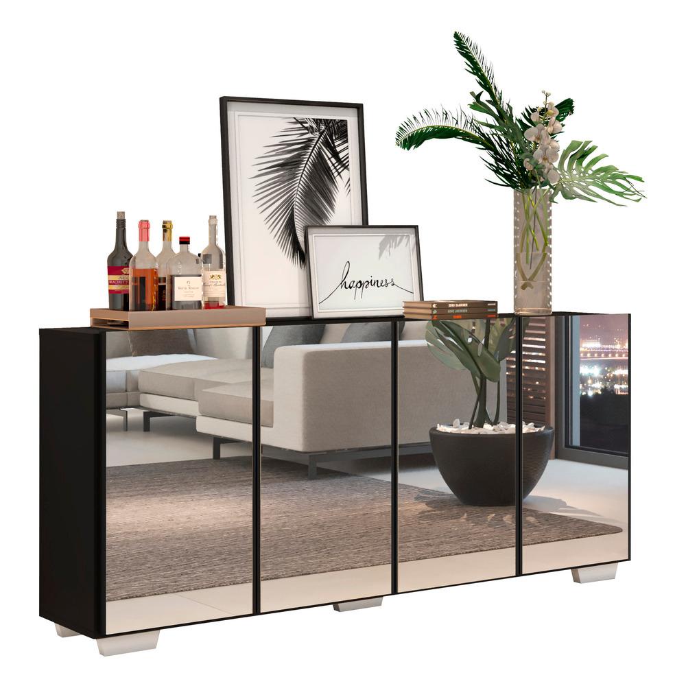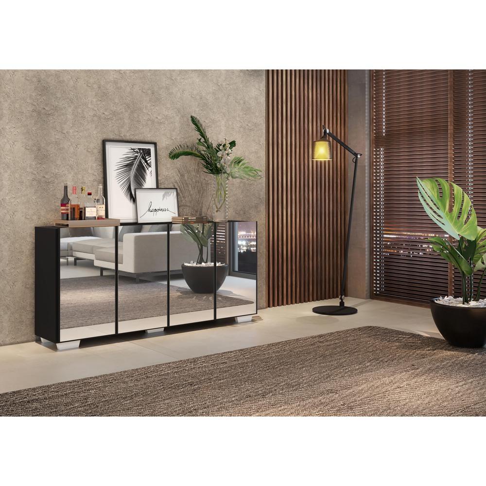 Aparador Buffet 4 portas c/ Espelho e Pés Quadrados Vegas Multimóveis Preto/Branco