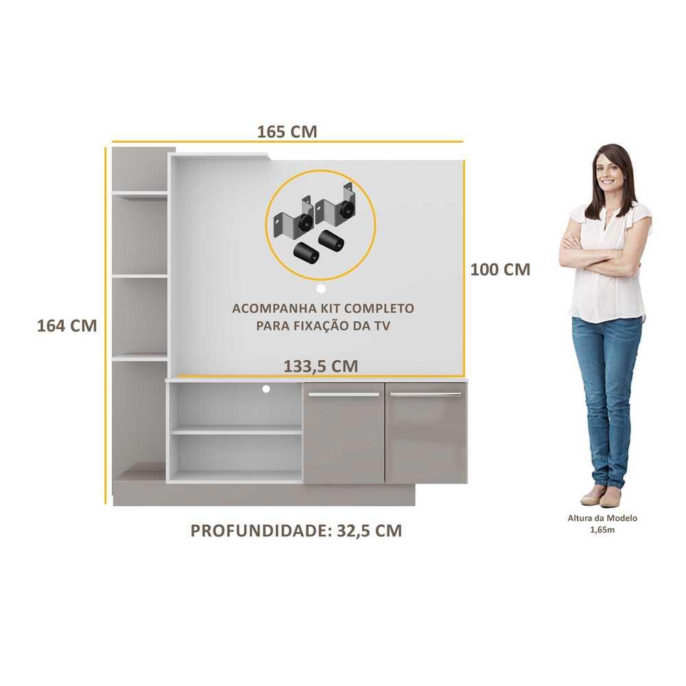Estante com Suporte para TV até 55" Multimóveis Denver FG3069 Branca/Lacca Fumê