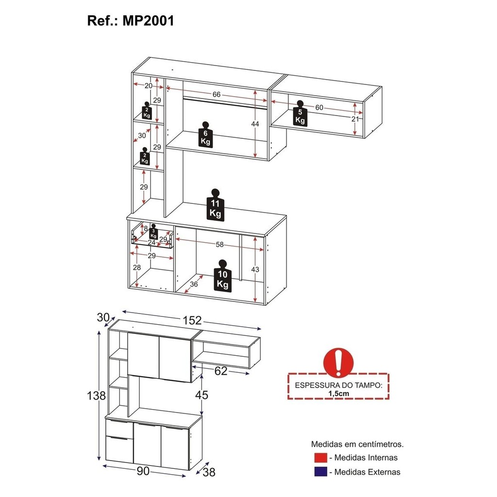 Cozinha Compacta com Armário e Balcão MP2001 Sofia Multimóveis Branca