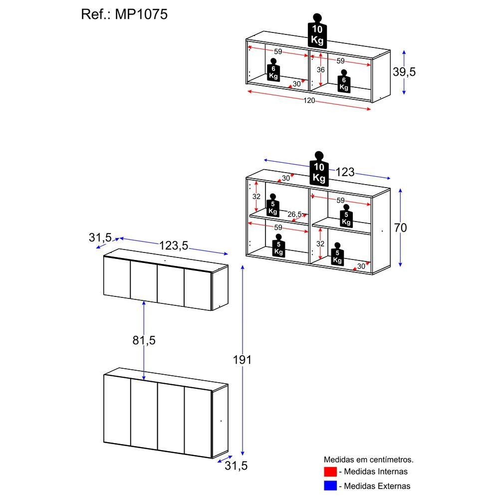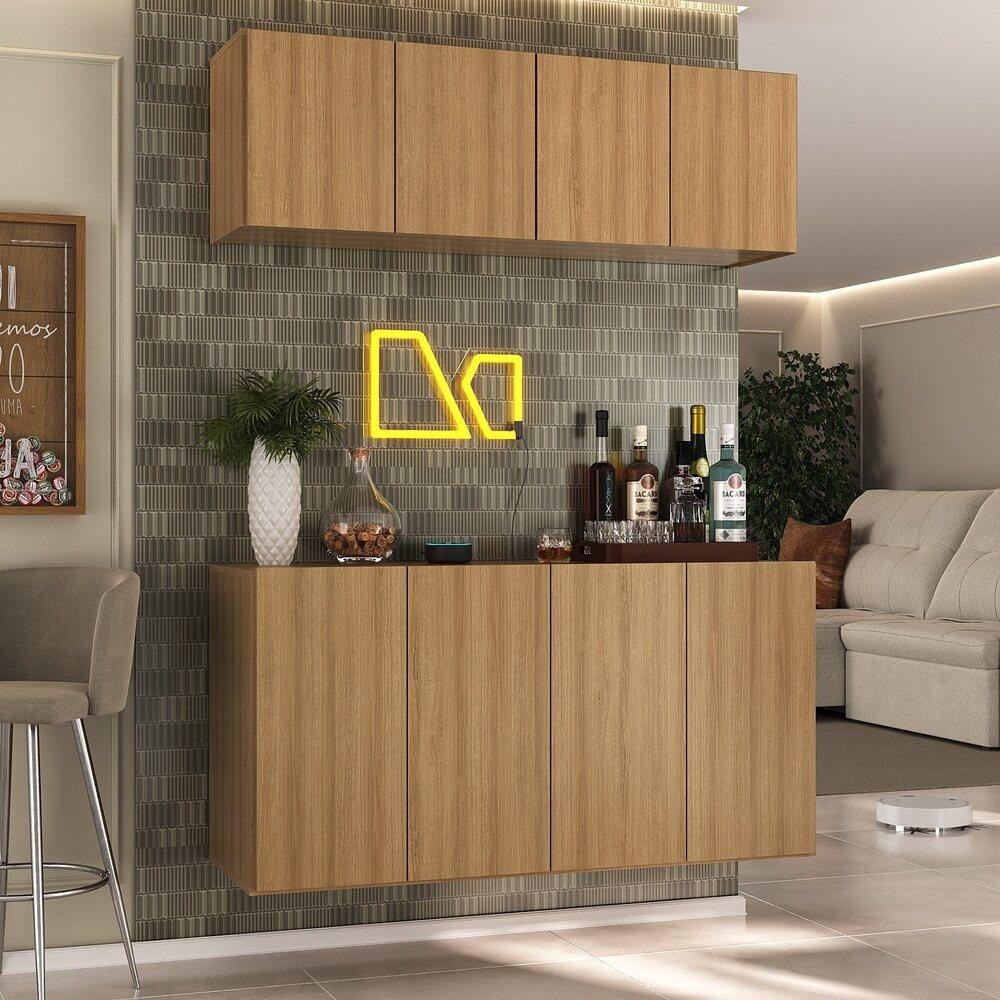 Kit Bar Armário Aéreo e Aparador 4 Portas Multimóveis MP1075