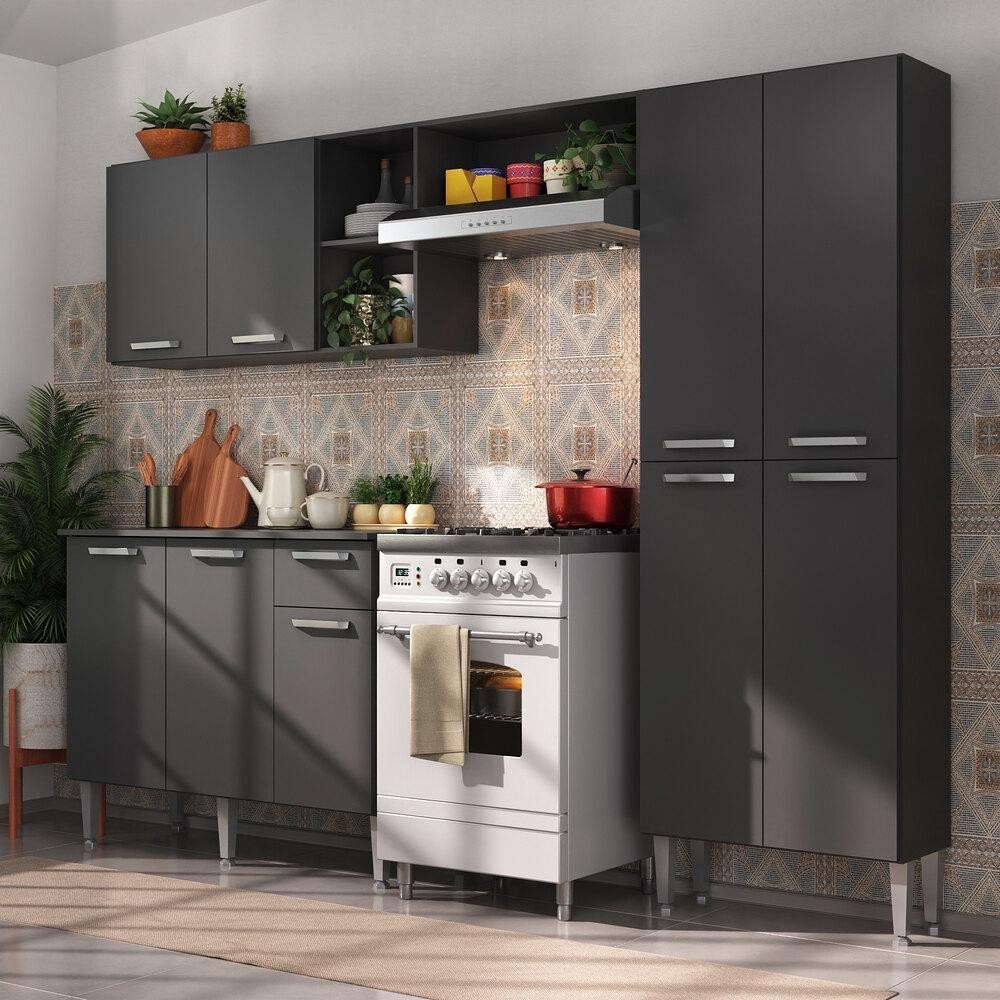 Cozinha Completa Compacta Pequim UP Multimóveis com Balcão - Preto