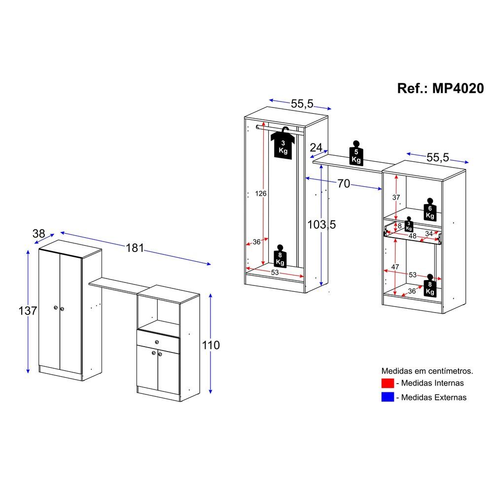 Guarda Roupa 4 Portas e 1 Gaveta Merengue Multimóveis Branco