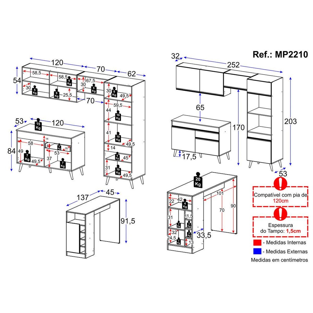 Armário de Cozinha Compacta com Mesa/Bancada Veneza Multimóveis MP2210