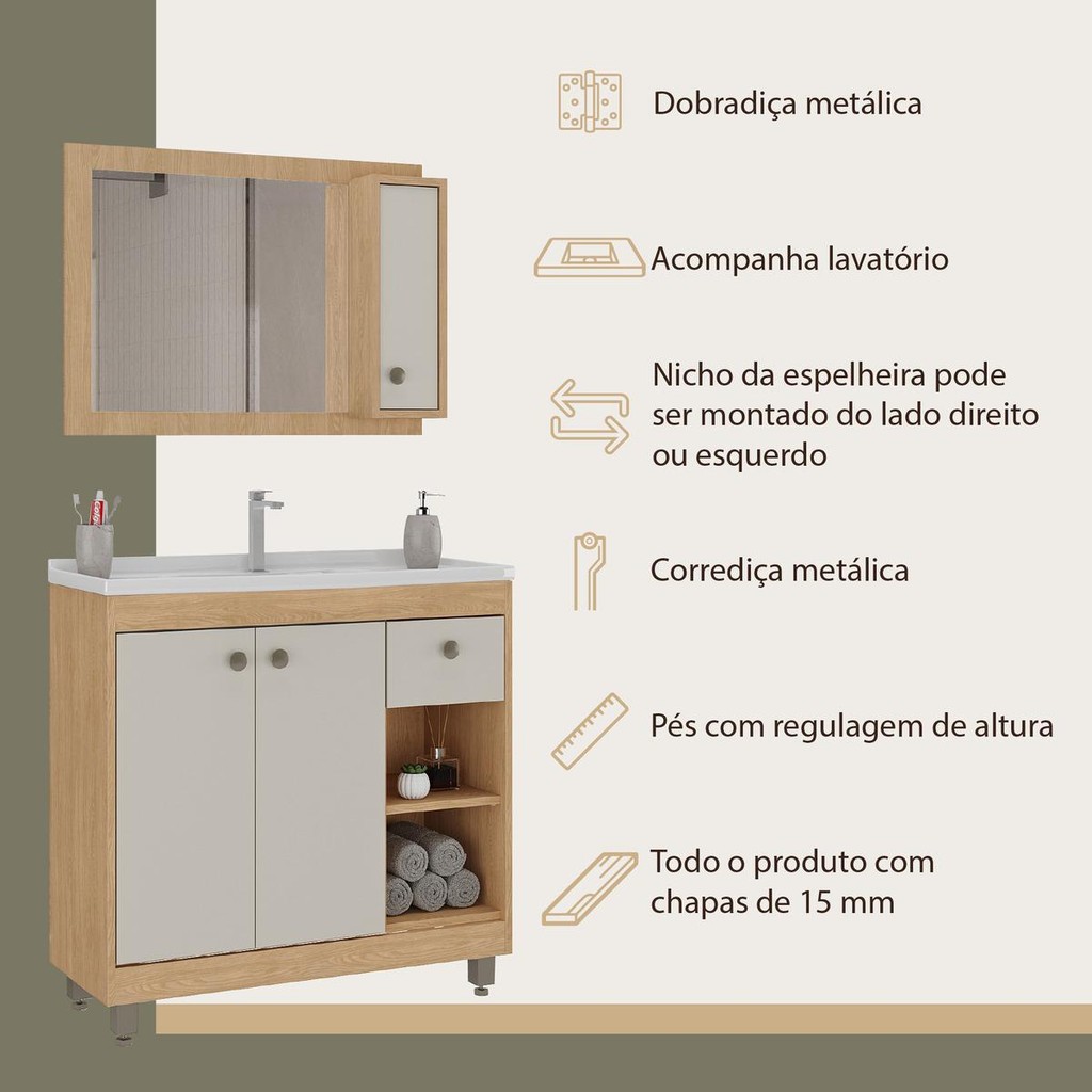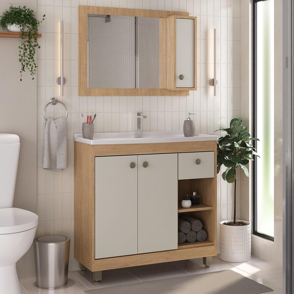 Gabinete de Banheiro com Cuba e Espelheira 80cm Multimóveis CR10134