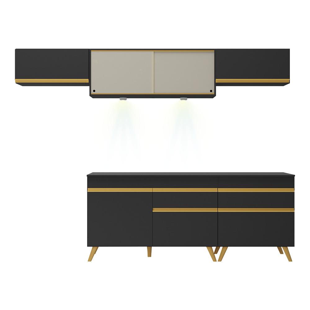 Cozinha Completa 5 peças com Leds MP2033 Veneza Up Multimóveis Preta