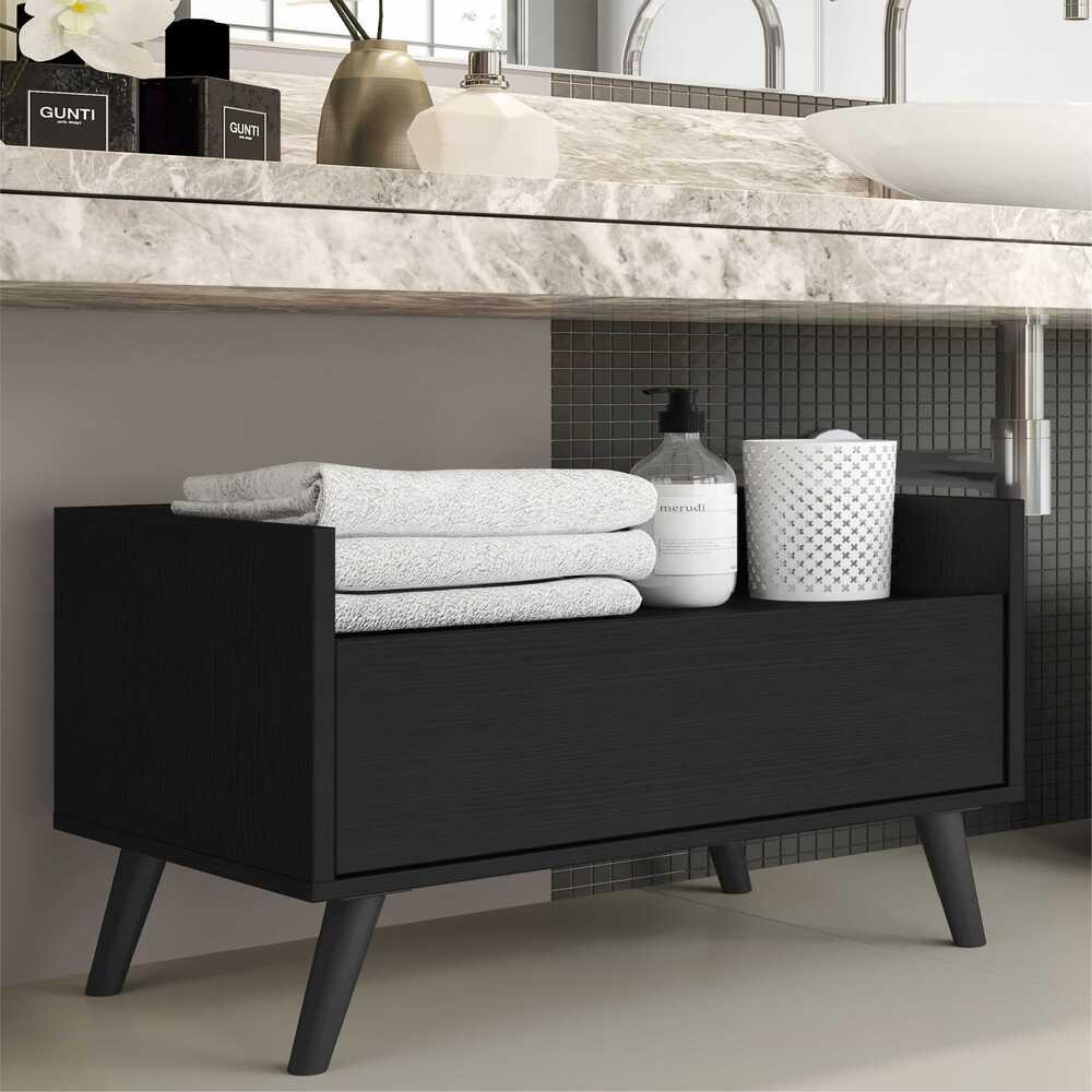 Gabinete Armário Banheiro 80 cm c/ Pés Retrô Multimóveis Preto