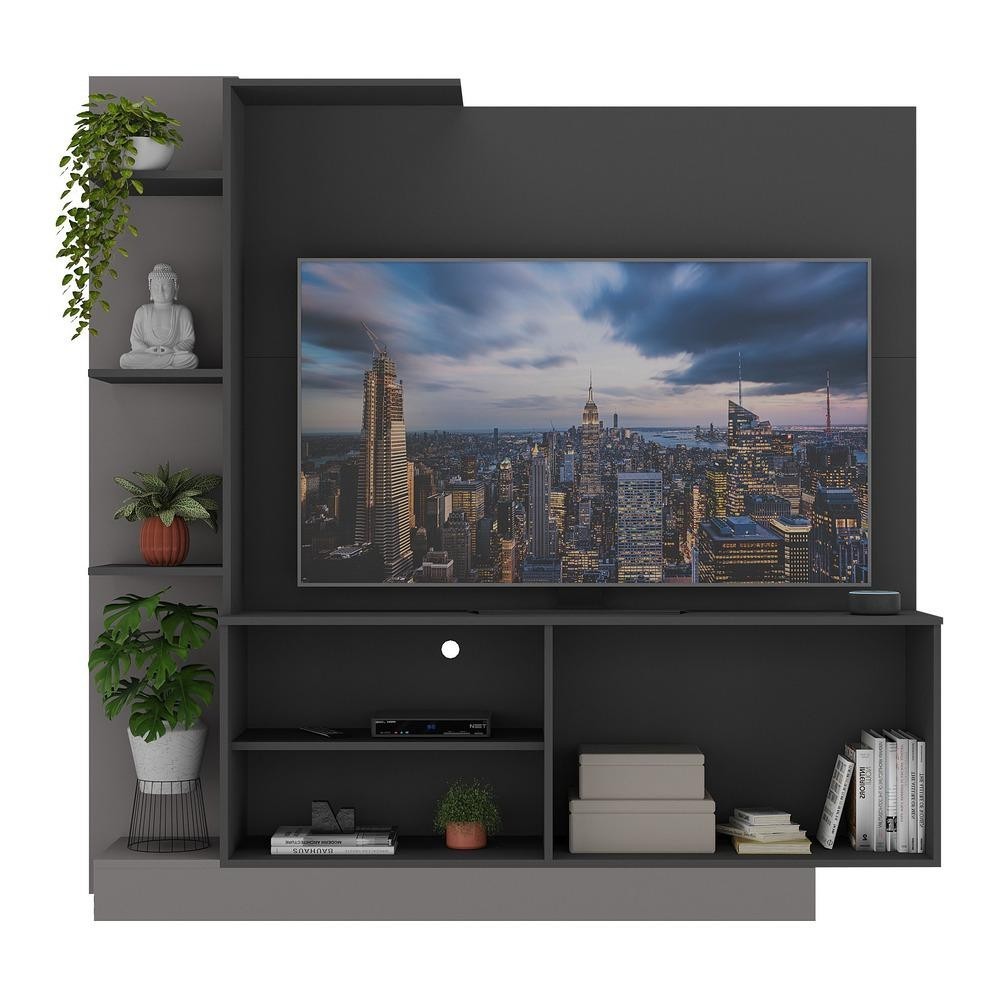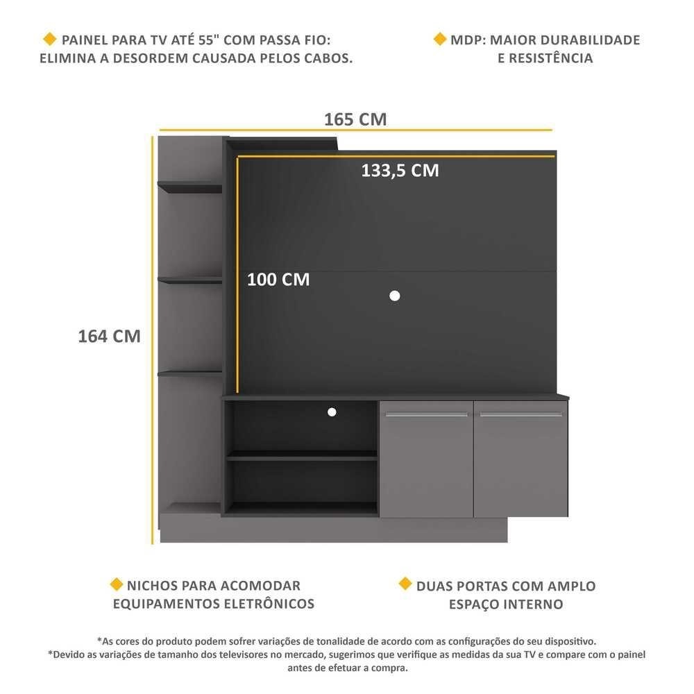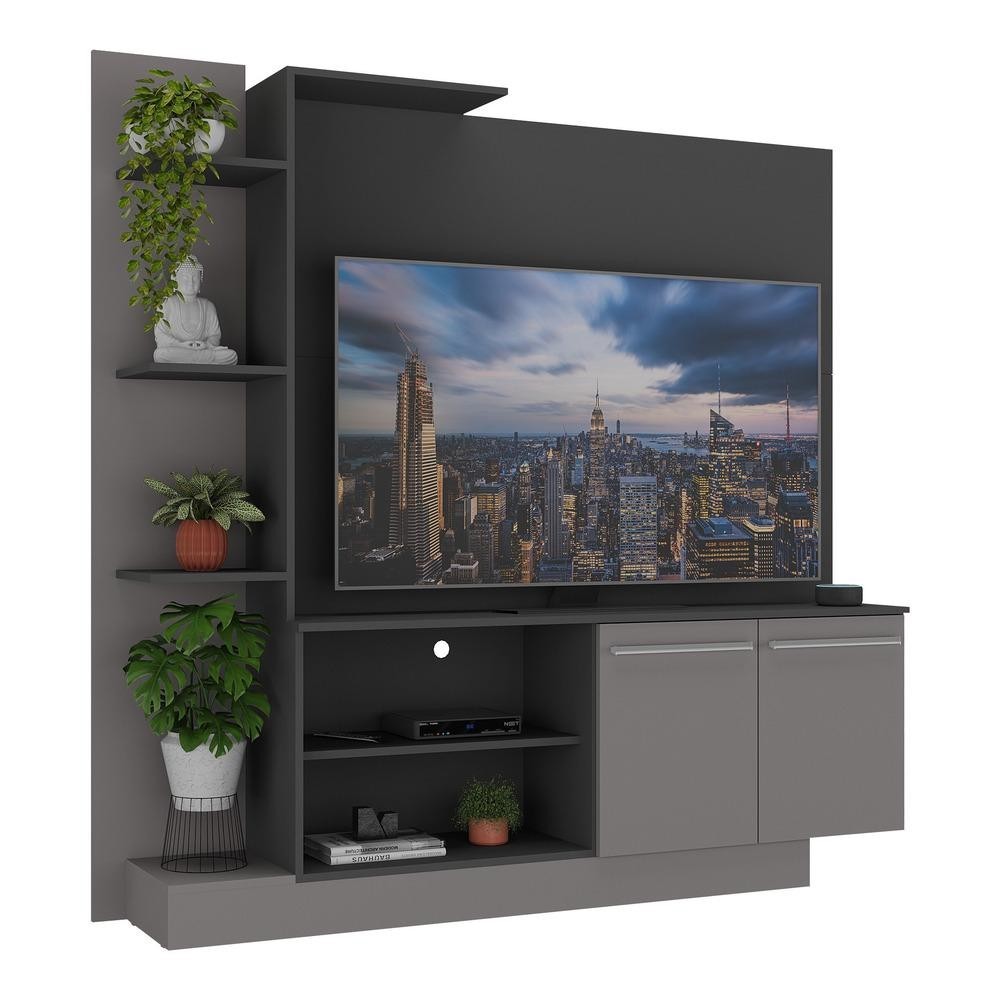 Estante com Painel TV 55" e 2 portas Denver Multimóveis Preto/Lacca Fumê