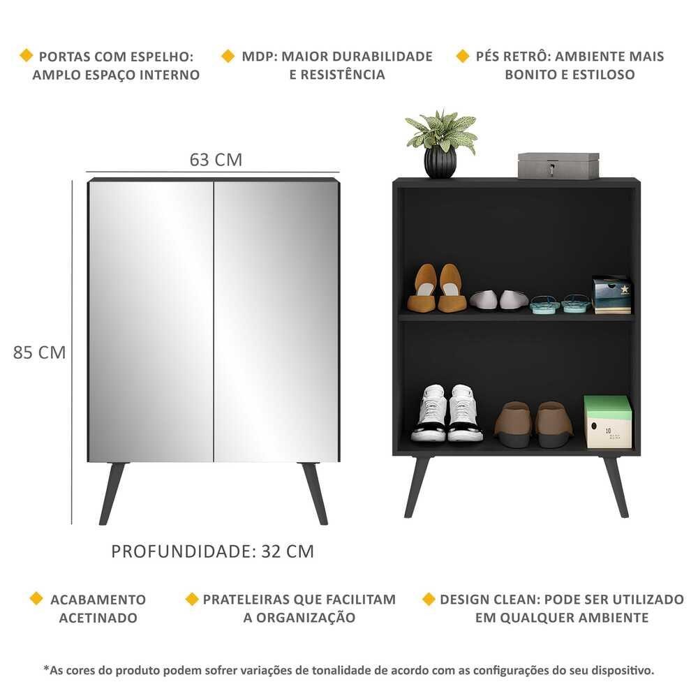 Sapateira 2 Portas Retrô com Espelho Nina Multimóveis V6012
