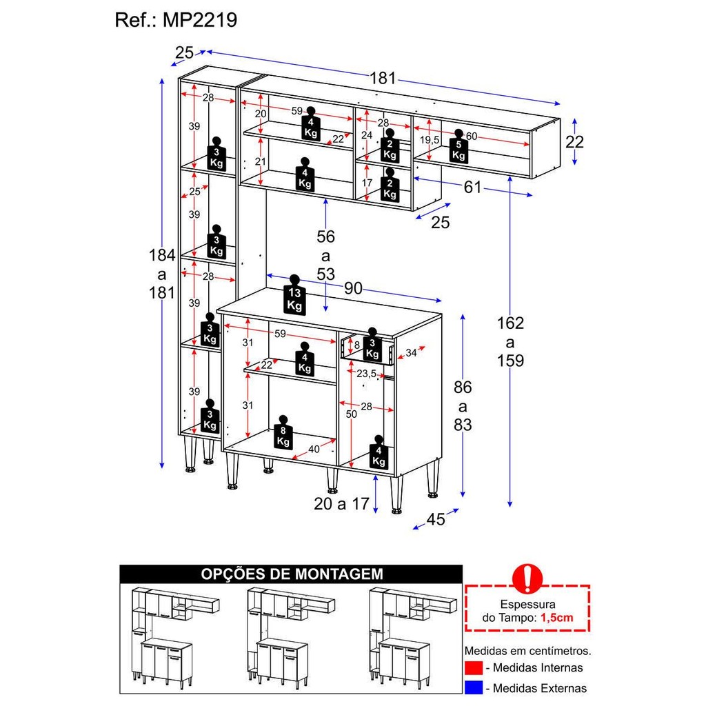Armário de Cozinha Compacta Smart Multimóveis MP2219