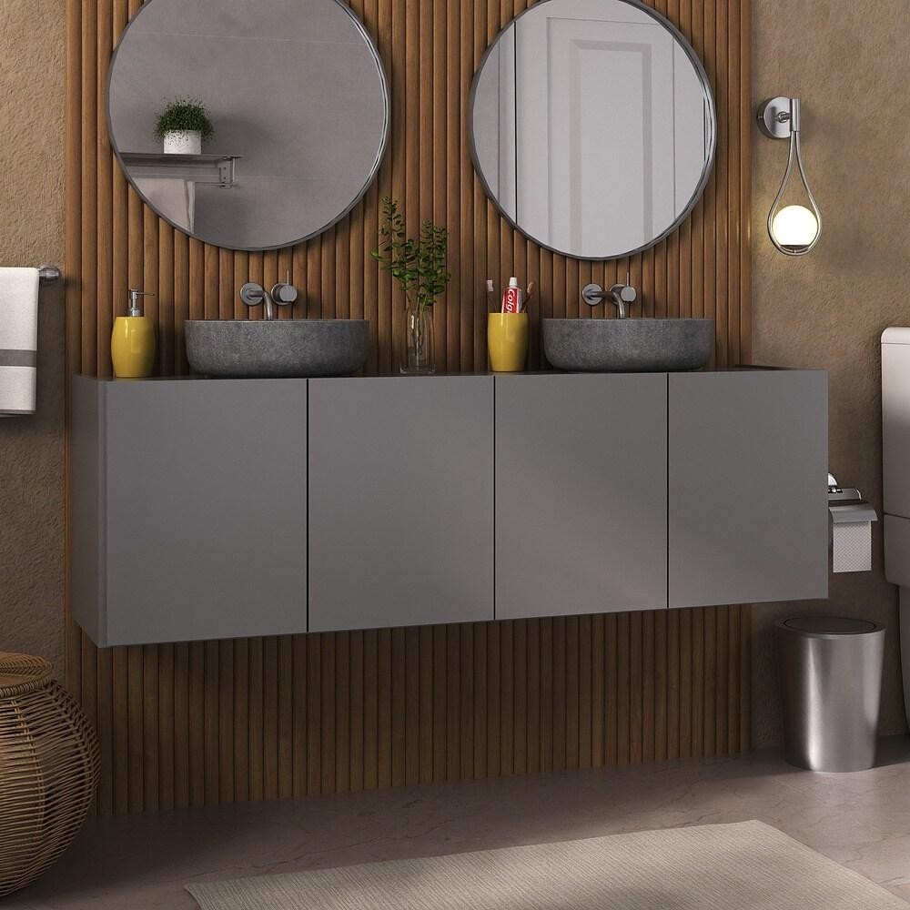 Gabinete de Banheiro 123,5cm Suspenso 4 Portas Multimóveis MP5047