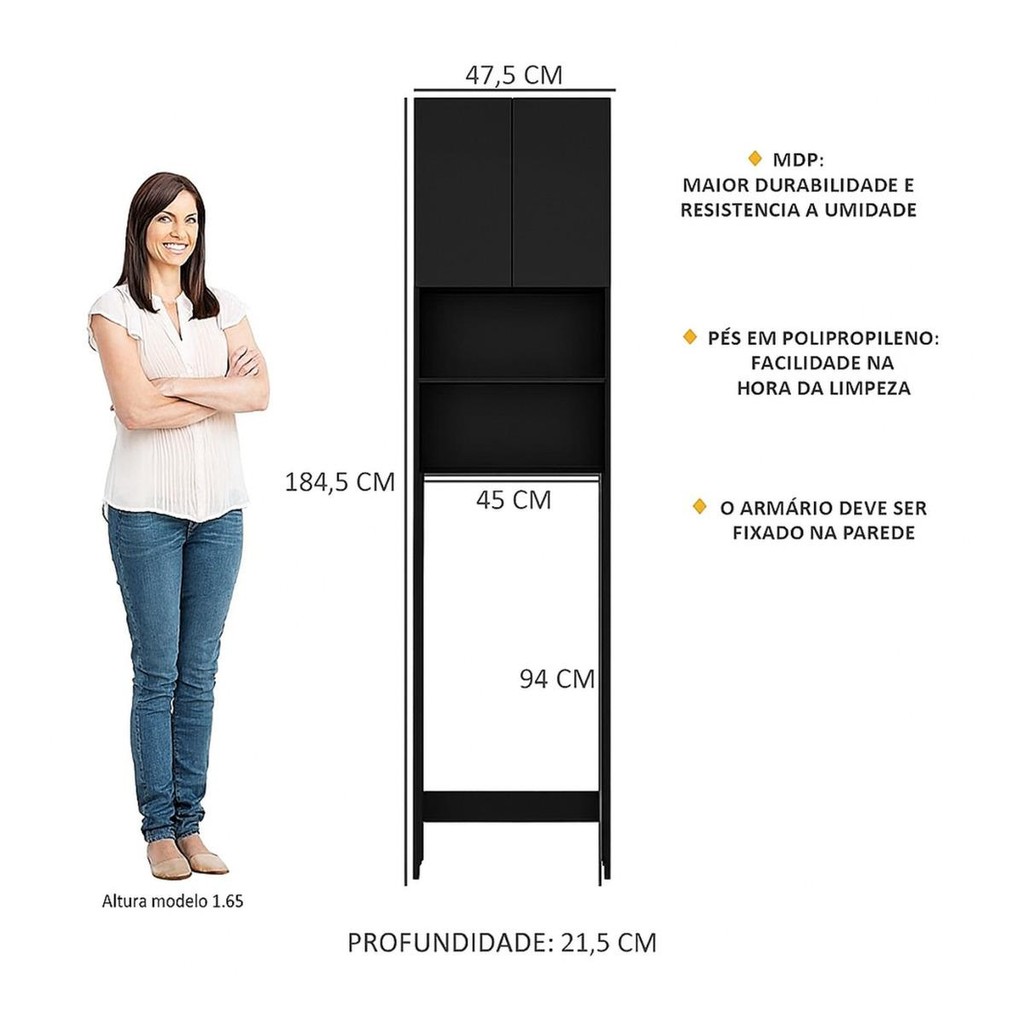 Armário Banheiro p/ Vaso Sanitário 2 Portas 2540 Multimóveis Preto