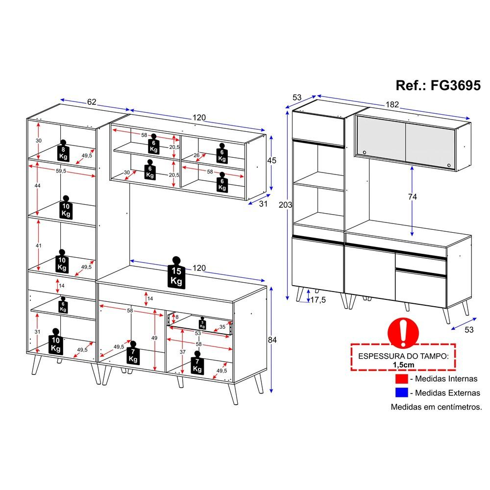 Cozinha Compacta Multimóveis Veneza GB FG3695 com Armário e Balcão Preta