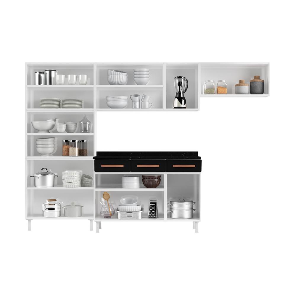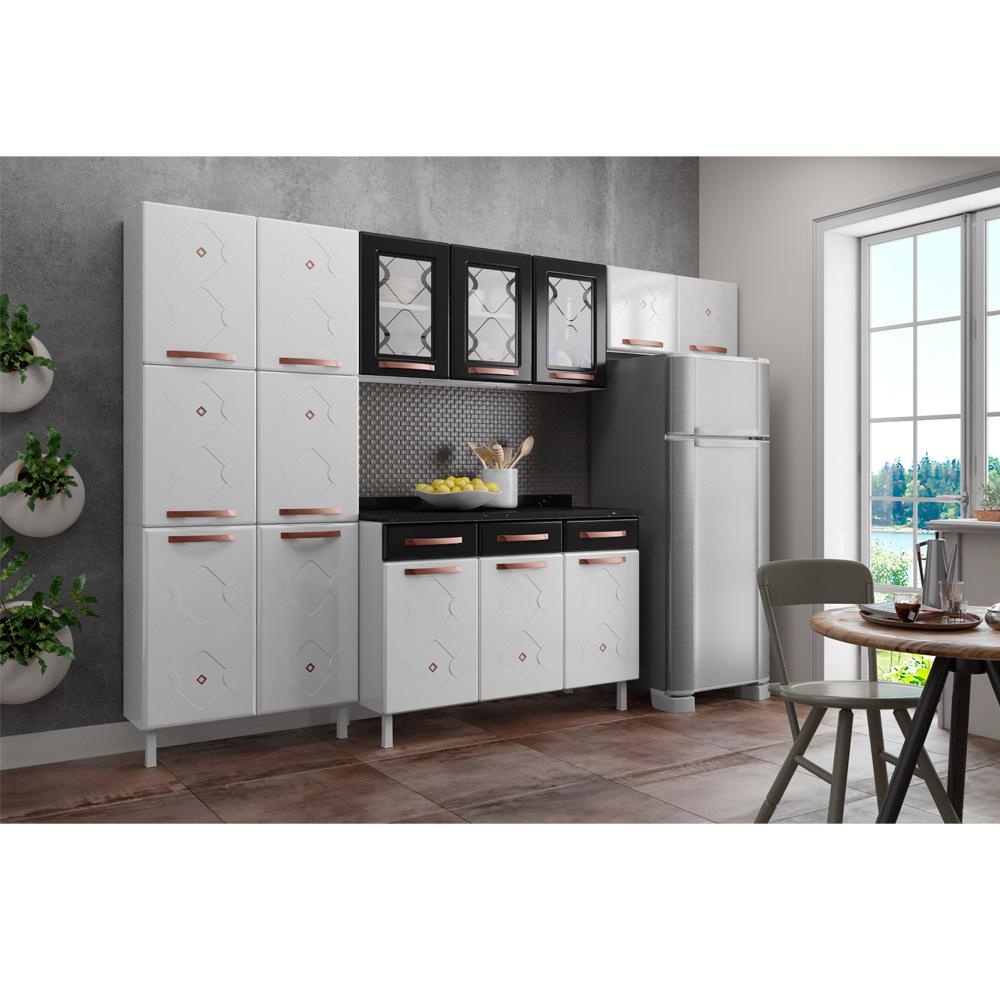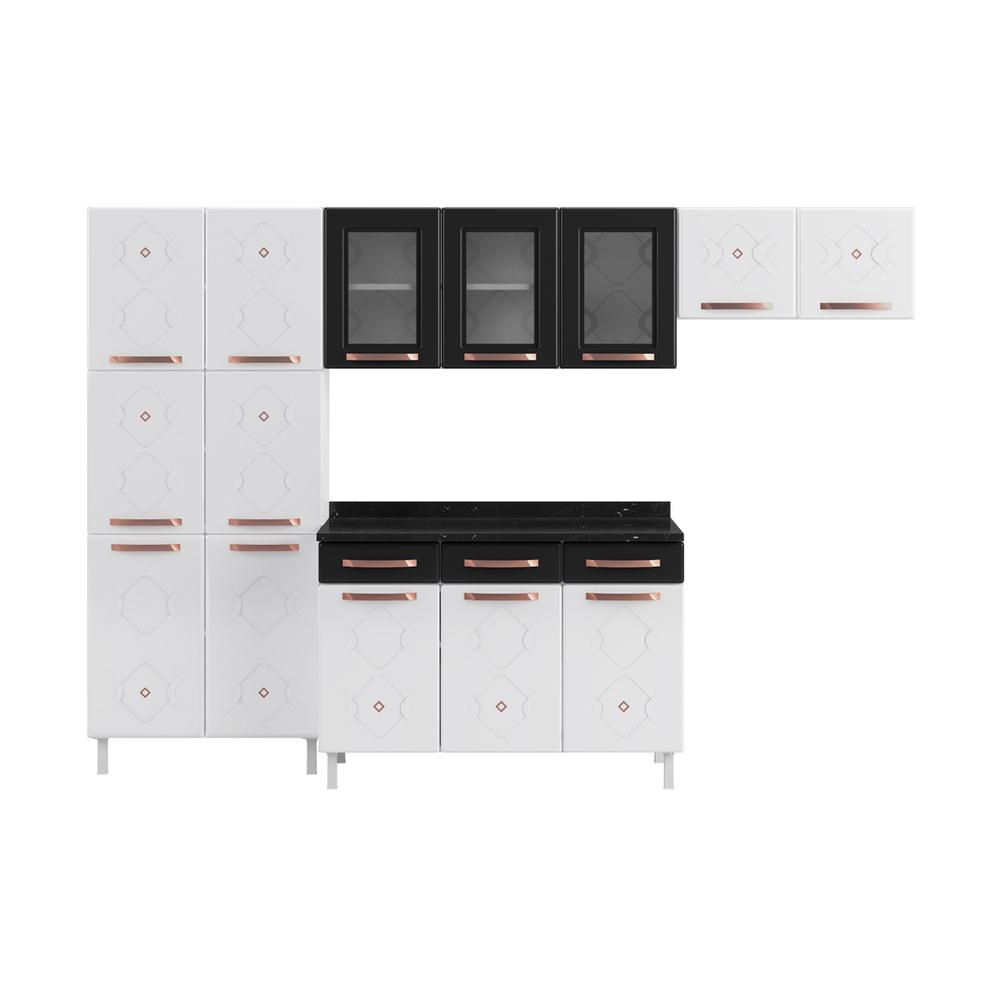 Cozinha de Aço Completa com Balcão Regina Multimóveis Glass CR6140 Branco/Preto