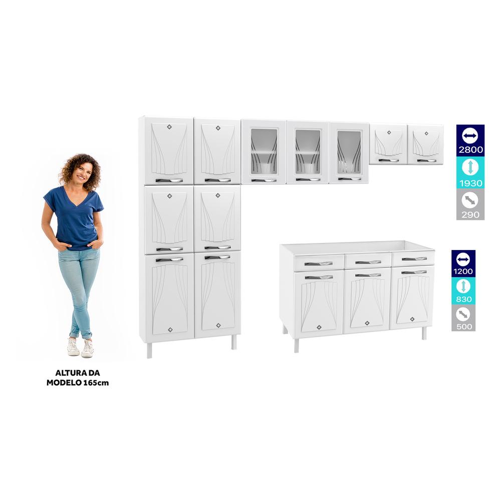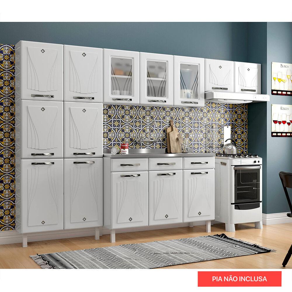 Cozinha de Aço Completa com Balcão para Pia Clara Multimóveis CR6154 Branco