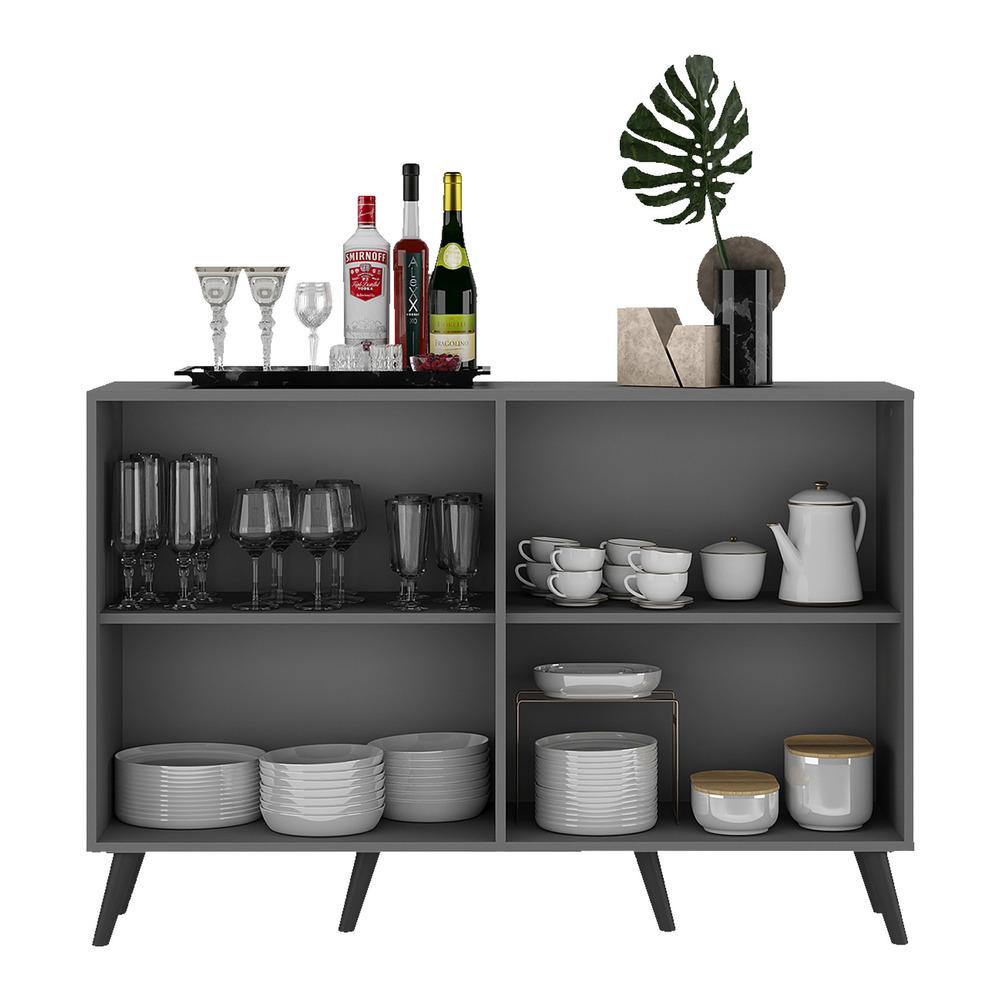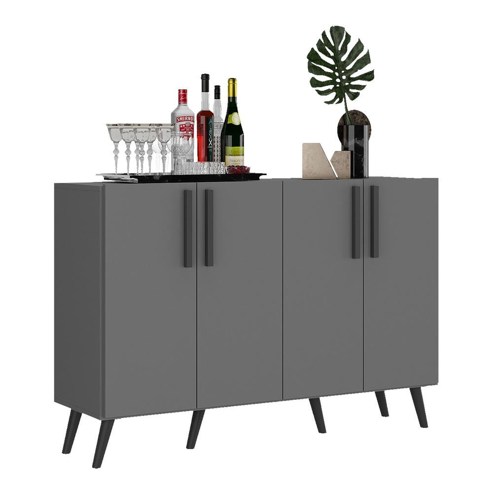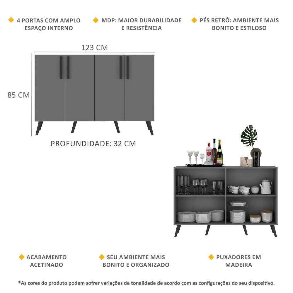 Aparador Buffet 4 Portas com Pés Retrô Viena Multimóveis Grafite/Preto