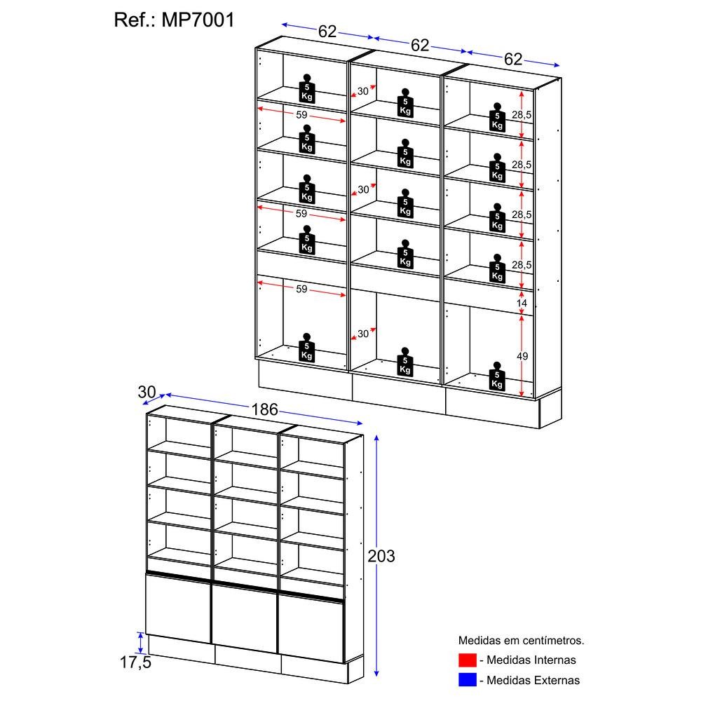 Armário/Estante Escritório 3 Portas Multimóveis MP7001