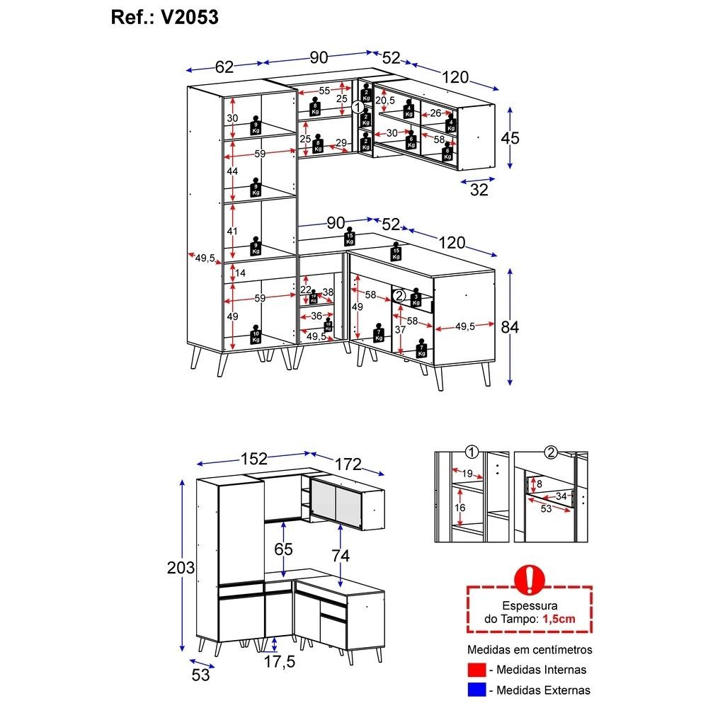 Armário de Cozinha Completa de Canto Veneza Multimóveis V2053