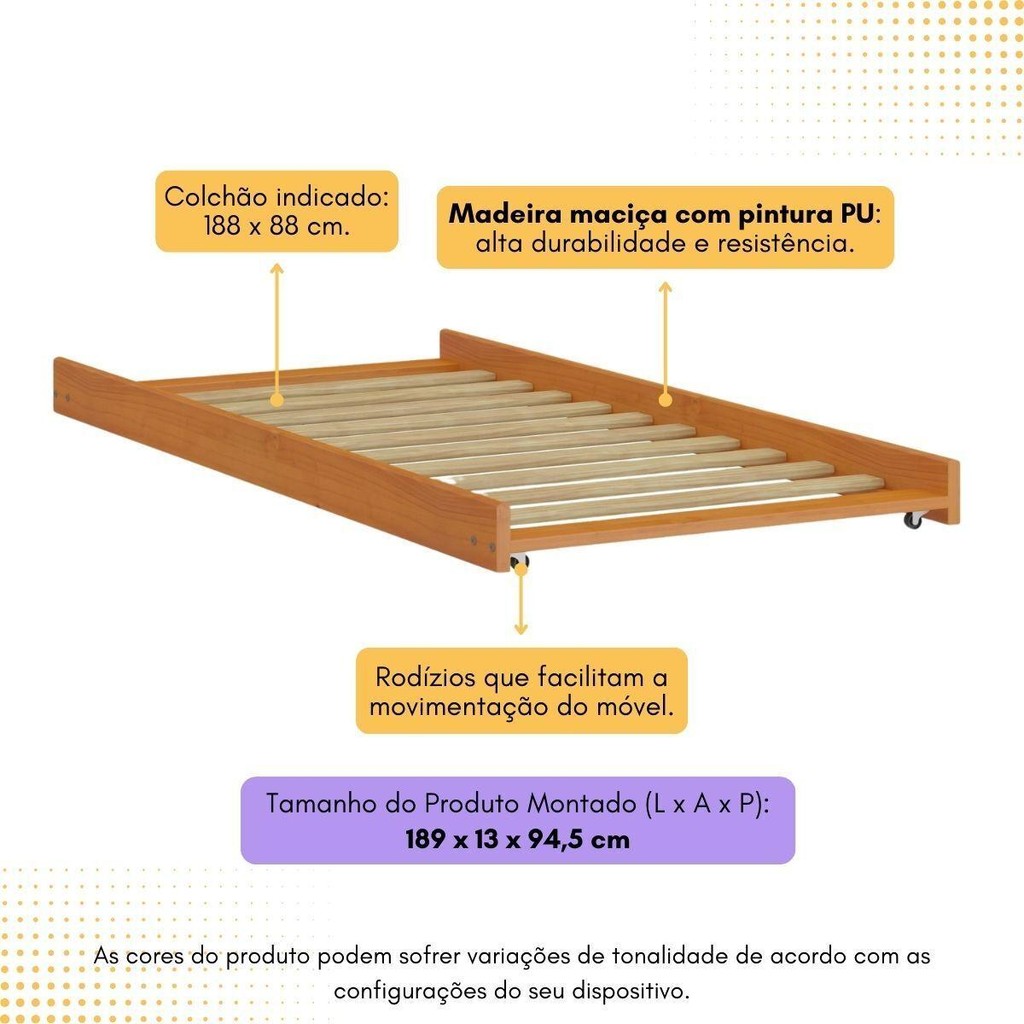 Cama Auxiliar de Solteiro Madeira Maciça para Colchão 88 x 188 cm com Rodízios Multimóveis CR35208