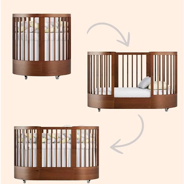 Berço Redondo Evolutivo 3 em 1 Wave Mel | Mini Berço + Berço + Mini Cama | MDF/Madeira