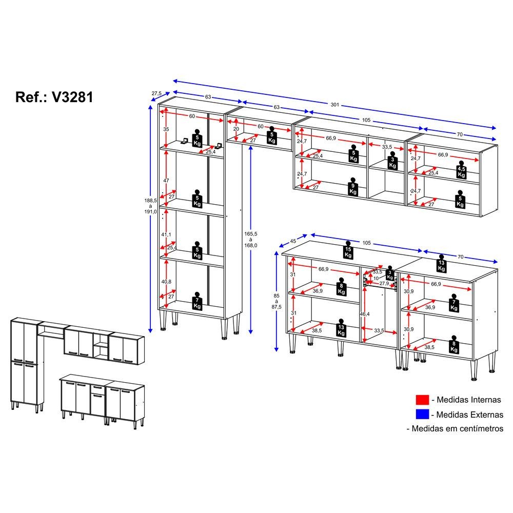 Cozinha Compacta com Armário e Balcão Xangai Jazz Multimóveis