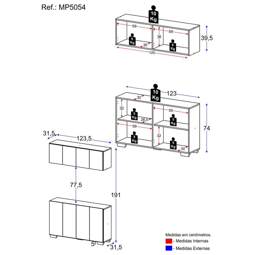 Conjunto Lavanderia Multiuso Armário Aéreo e Balcão 4 Portas Multimóveis MP5054