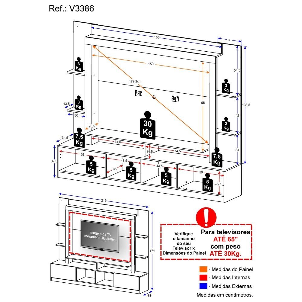 Estante com Suporte TV 65" e 2 portas Oslo Multimóveis V3386
