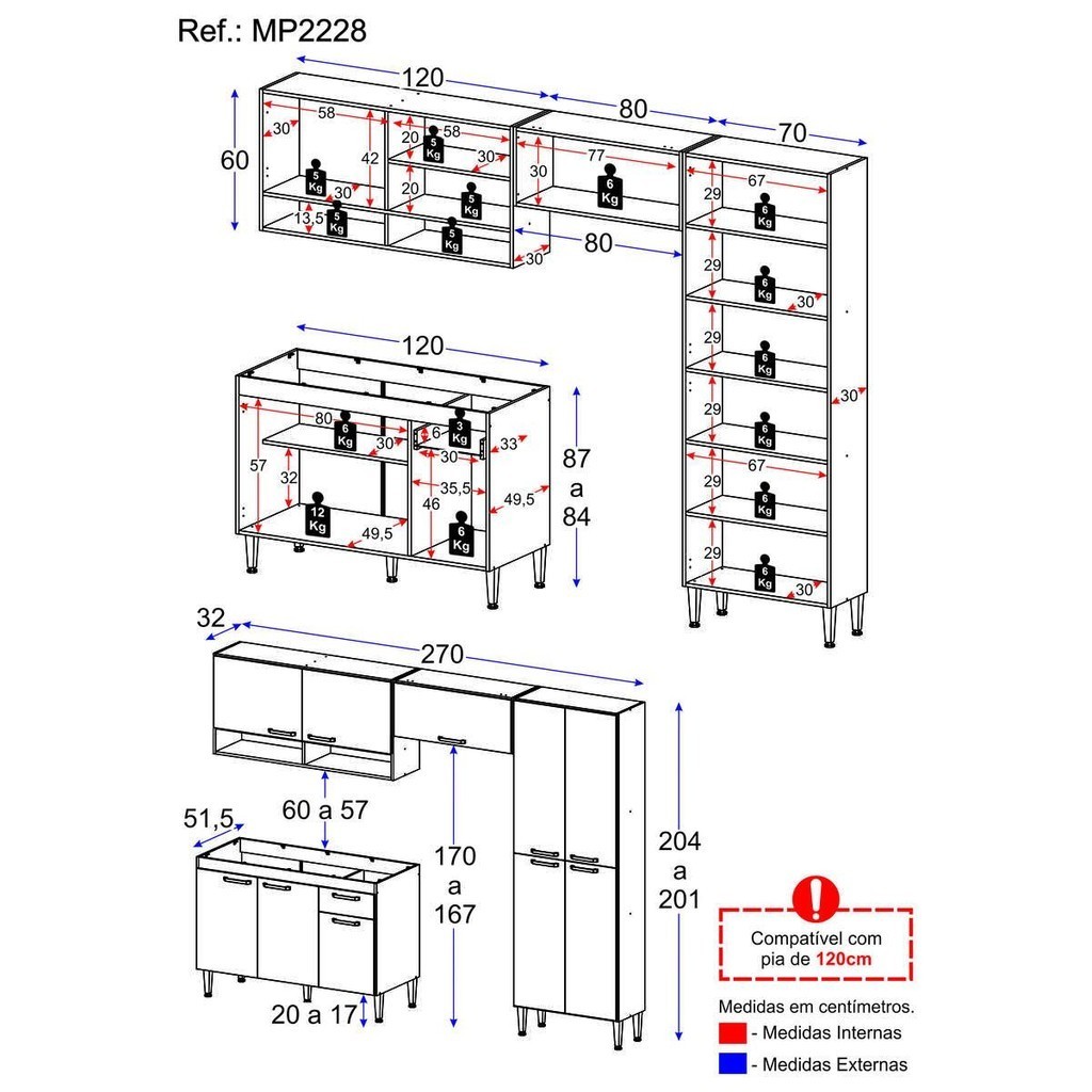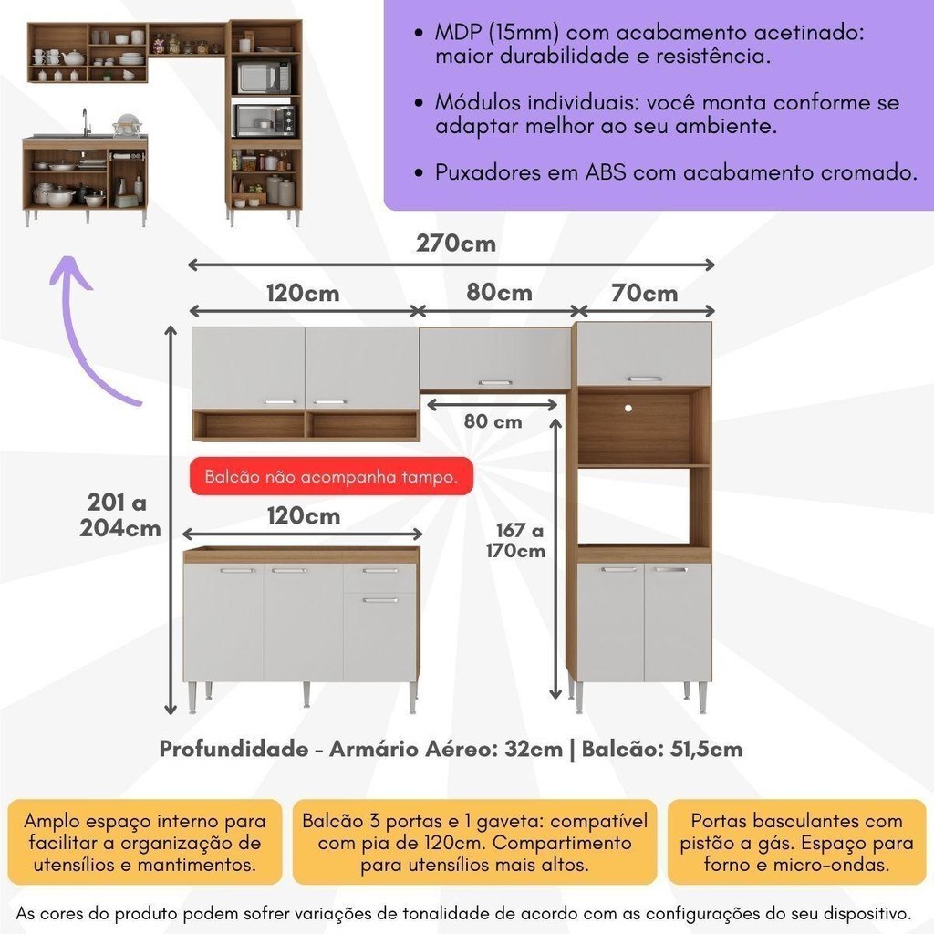 Armário de Cozinha Compacta Modulada com Gabinete para Pia Paris Multimóveis MP2228 Rustic/Branco