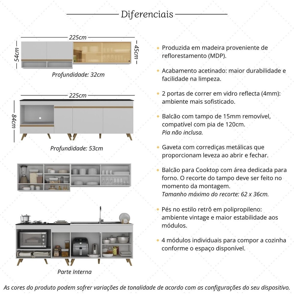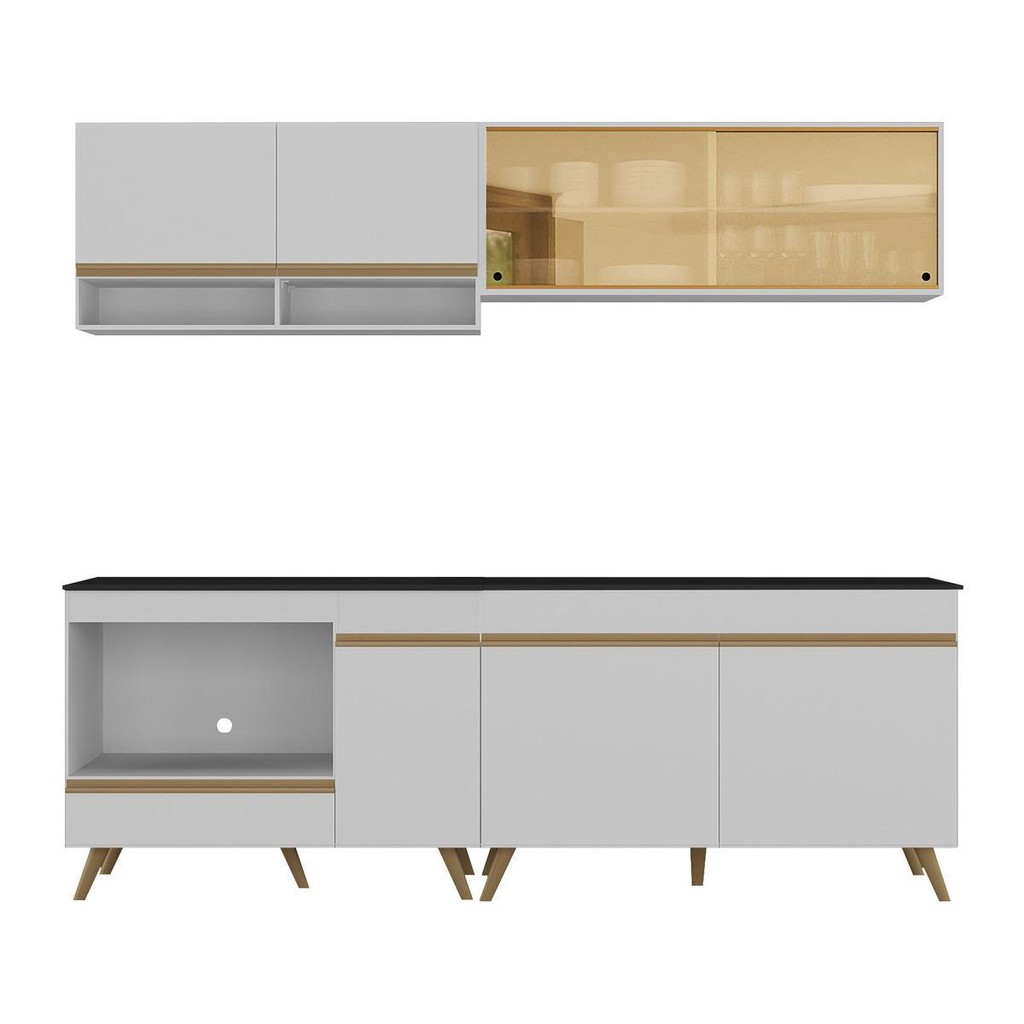 Armário de Cozinha Modulada Compacta 225cm com Balcão para Cooktop Veneza Multimóveis MP2265