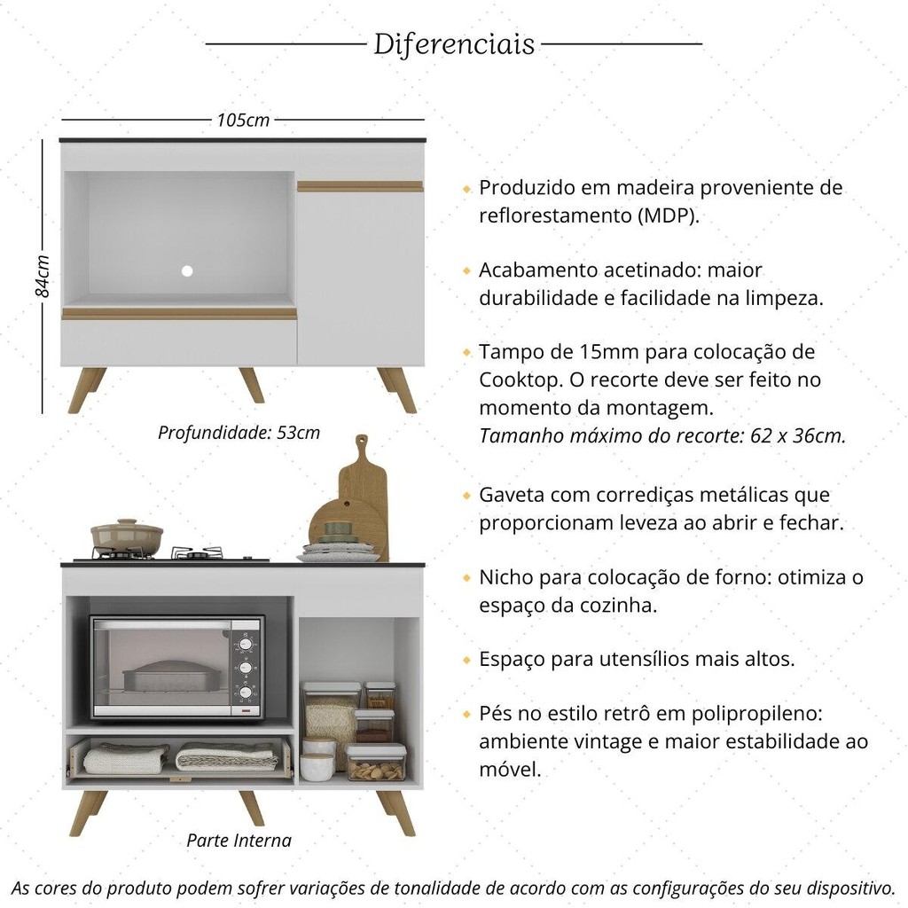 Balcão para Cooktop e Forno 105cm 1 Porta 1 Gaveta Veneza Multimóveis MP2258