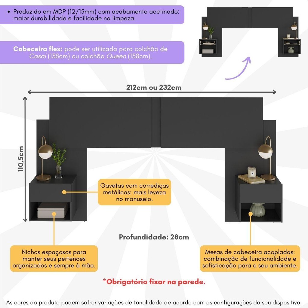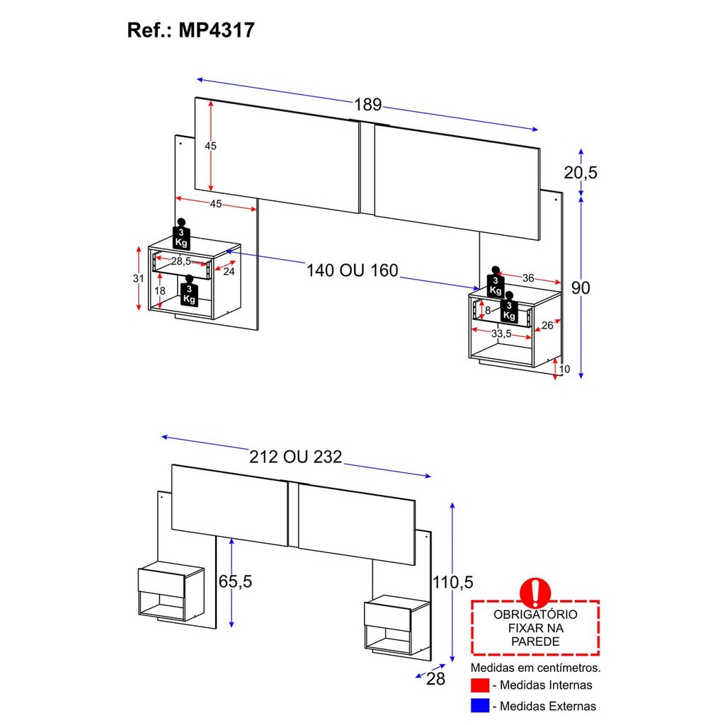 Cabeceira Casal/Queen c/2 Mesas Cabeceira Multimóveis MP4317