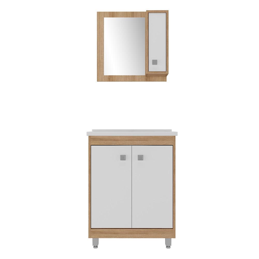 Gabinete Banheiro com Cuba e Espelheira 60cm Multimóveis CR10058 Castanho Argel/Branco
