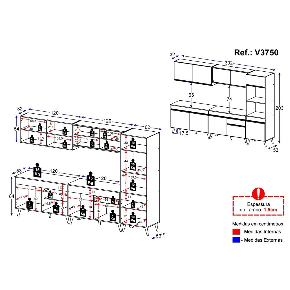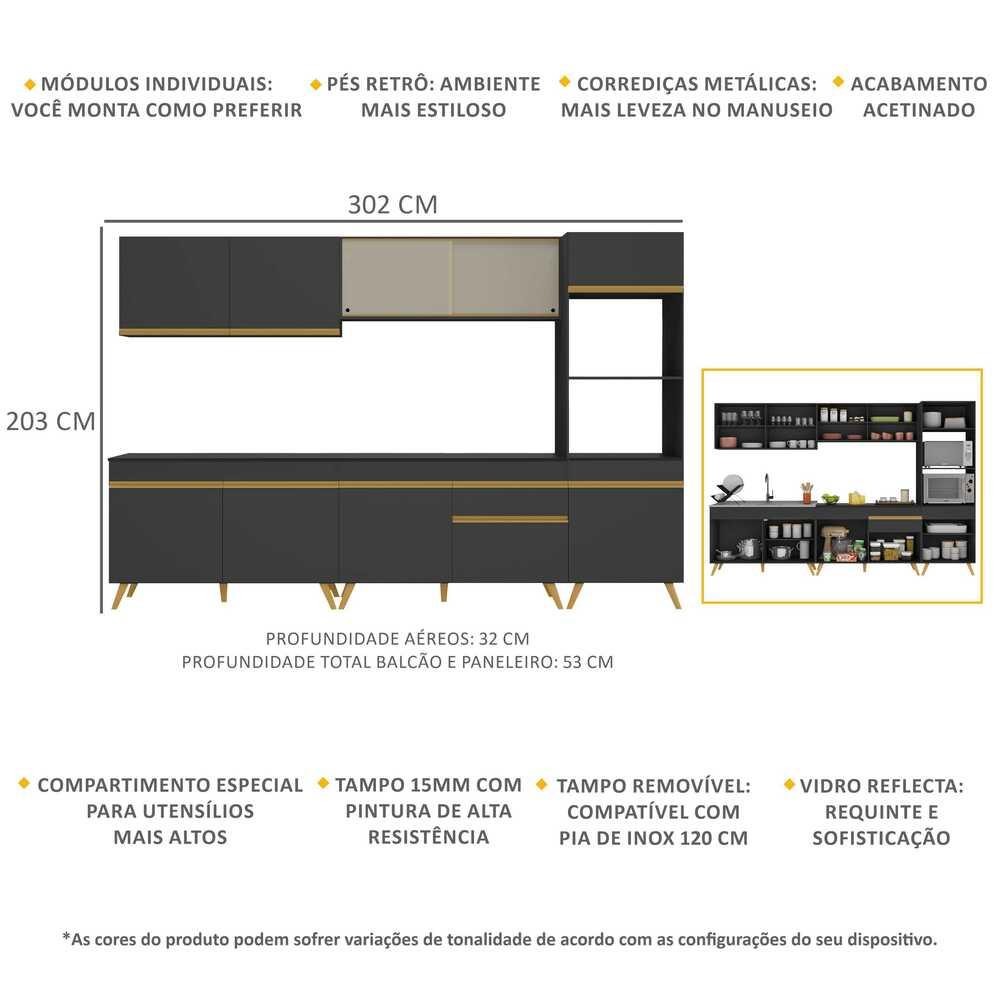 Armário de Cozinha Completa 302cm Veneza Multimóveis V3750