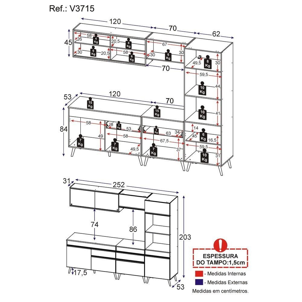 Armário de Cozinha Completa 252cm Veneza Multimóveis V3715