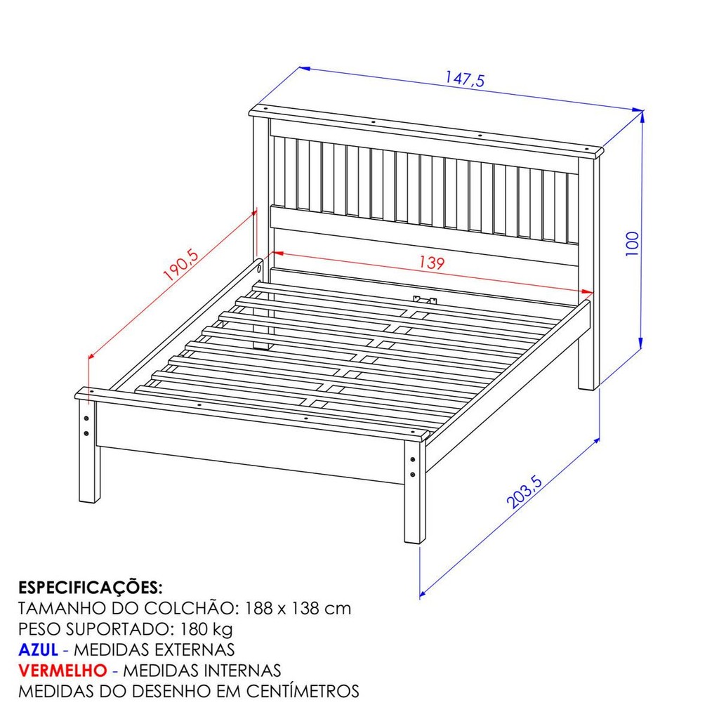 Cama de Casal Madeira Maciça para Colchão 188 x 138cm Multimóveis CR35240