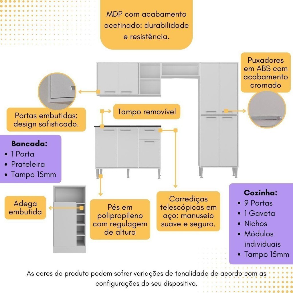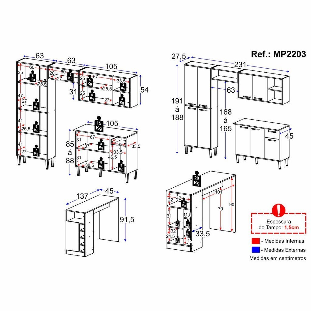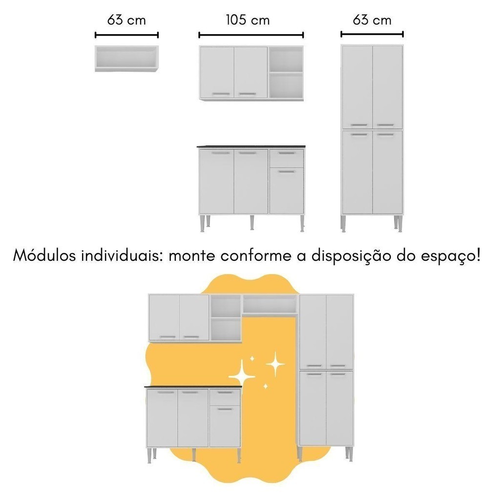 Armário de Cozinha com Bancada Americana Xangai Multimóveis MP2203