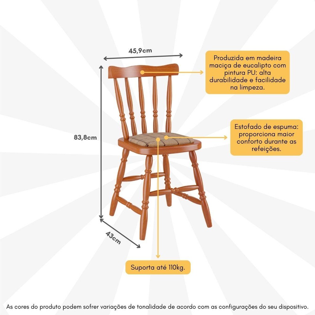 Conjunto com 2 Cadeiras de Jantar Madeira Maciça com Estofado Multimóveis CR50081
