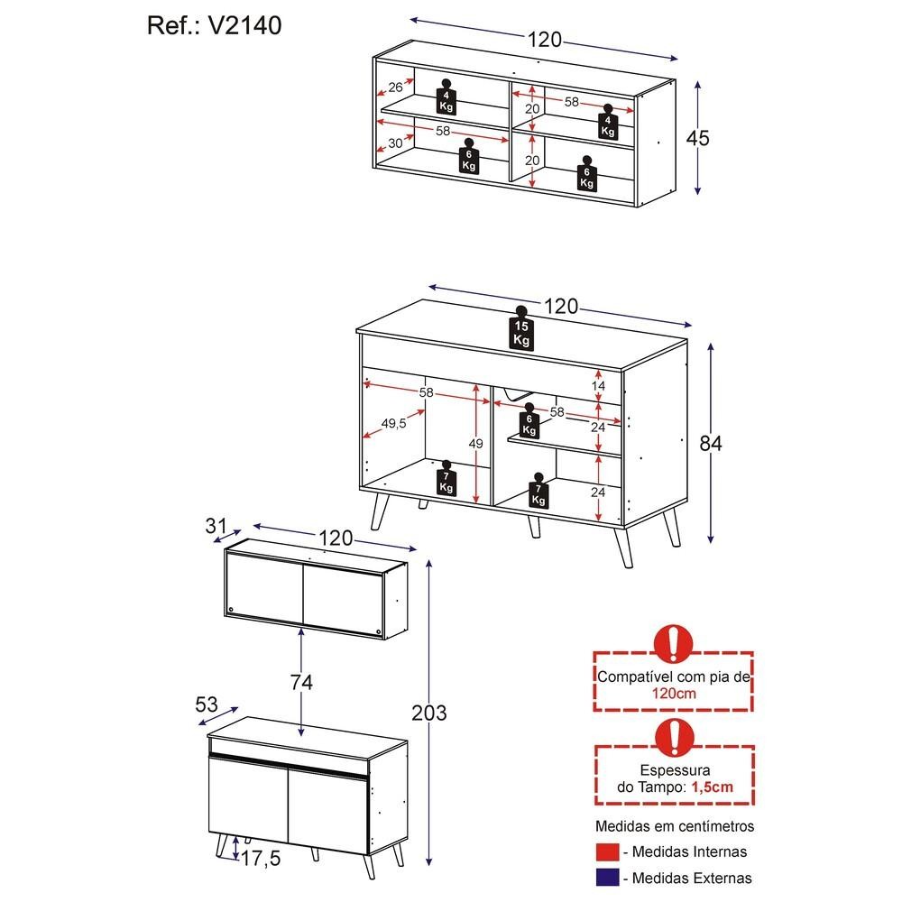 Armário de Cozinha Compacta 120cm Veneza Multimóveis V2140