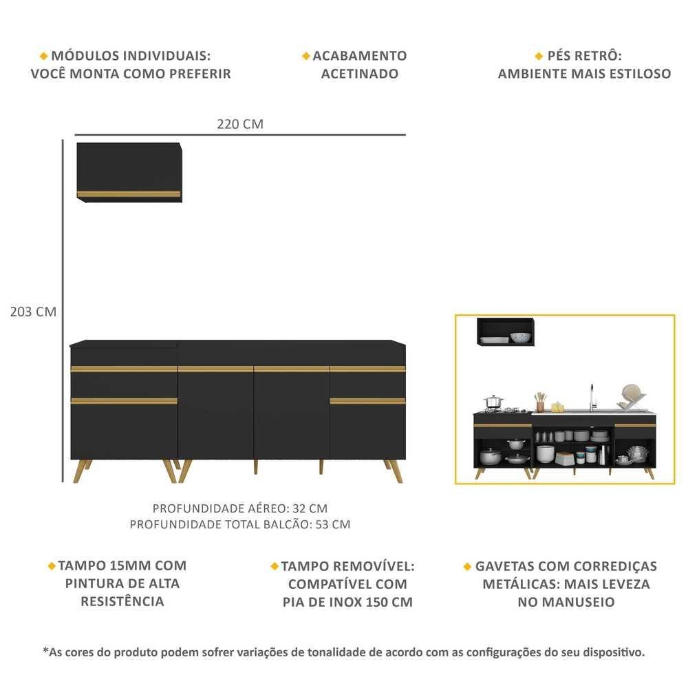 Armário de Cozinha Compacta 220cm Veneza Multimóveis V2074