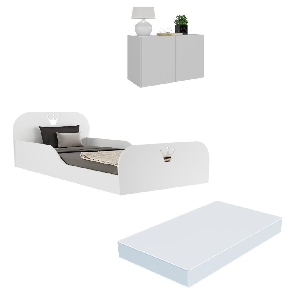 Cama Infantil Montessoriana com Colchão Incluso e Mesa de Cabeceira 2 Portas Multimóveis MP4195