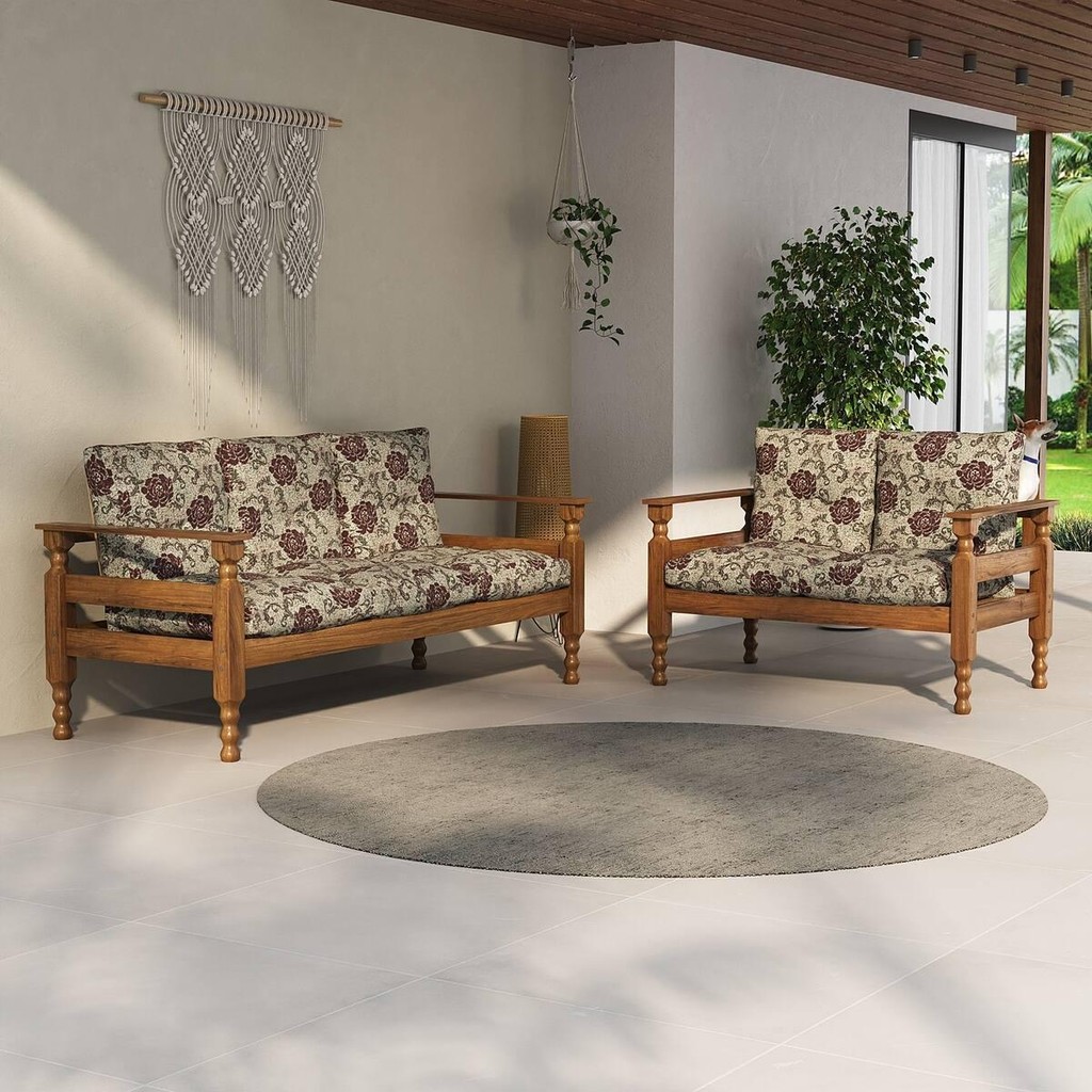 Jogo de Sofá Madeira Maciça 2 e 3 Lugares Liz Multimóveis CR7004
