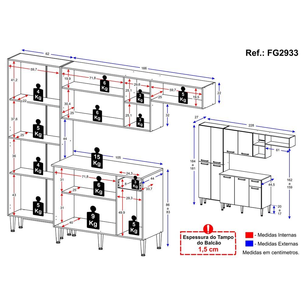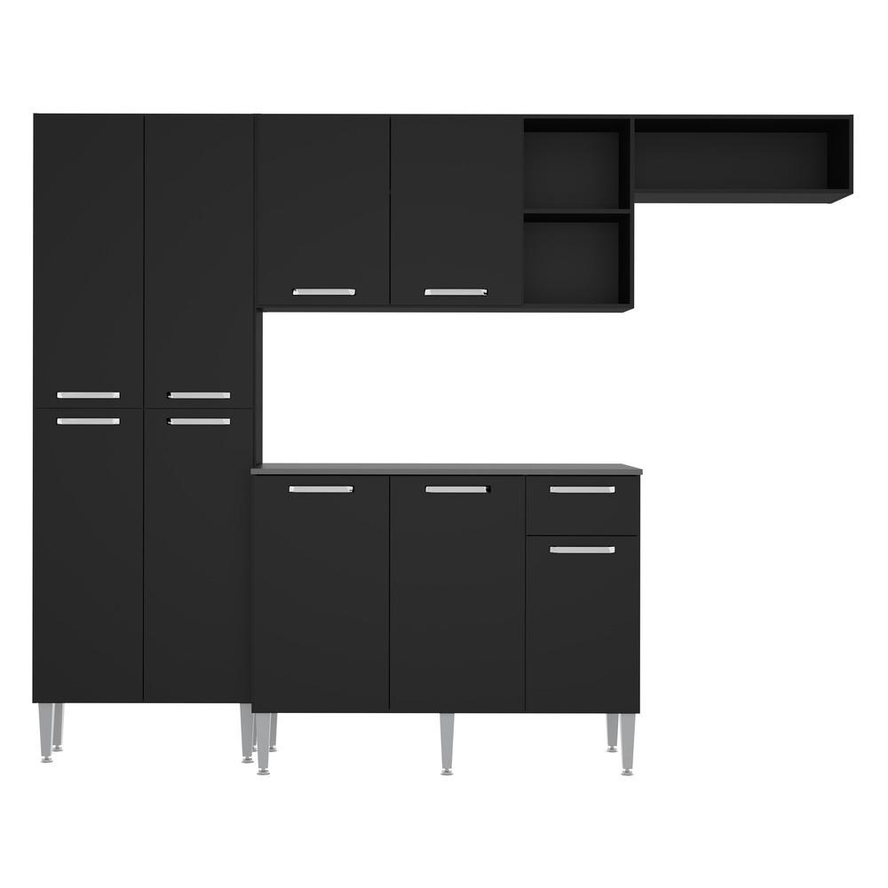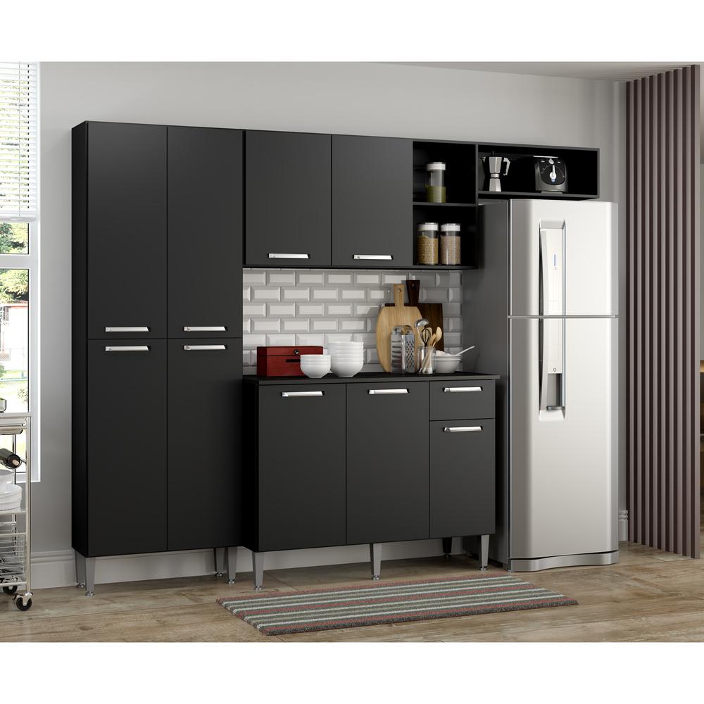 Cozinha Compacta Multimóveis Pequim FG2933 com Armário e Balcão Preta