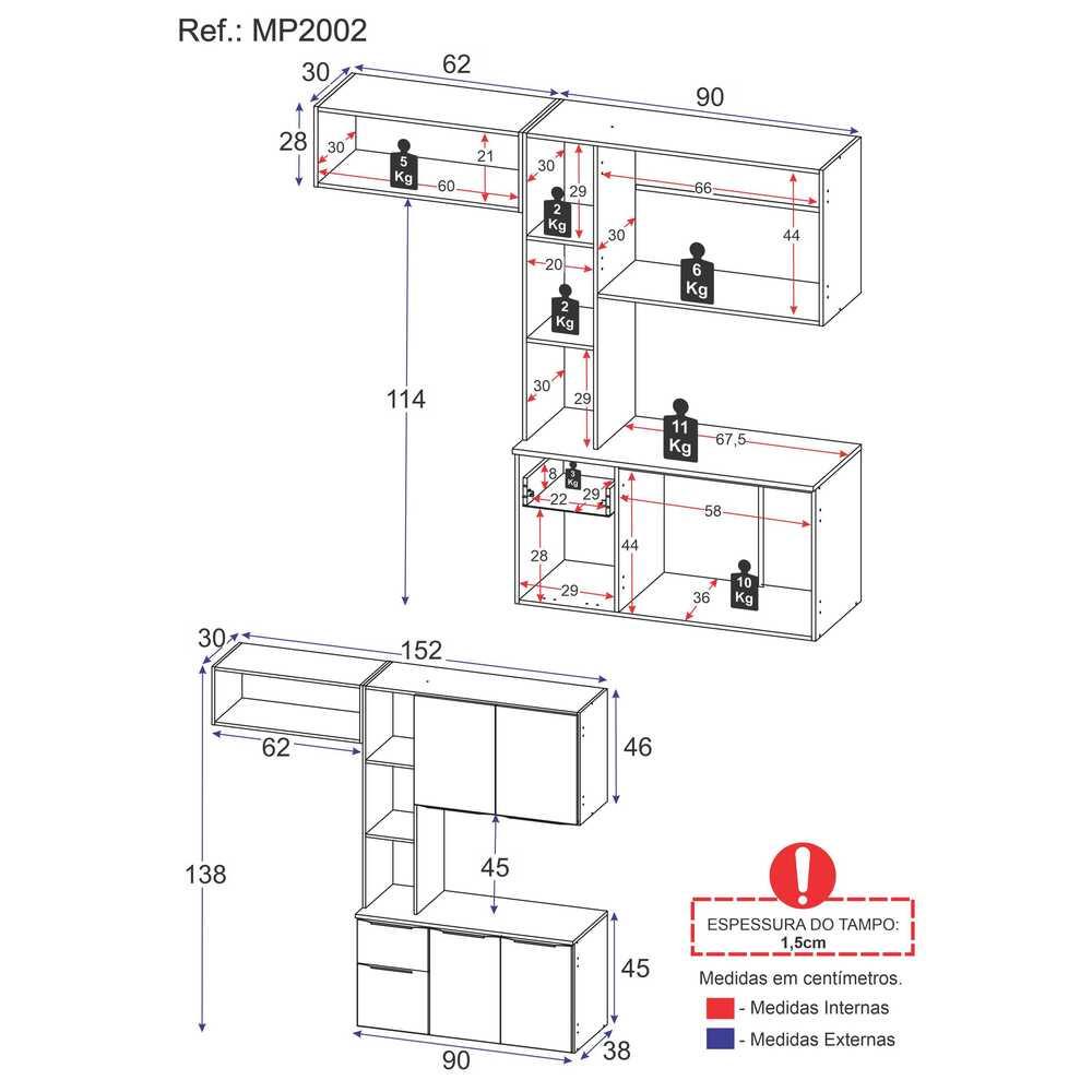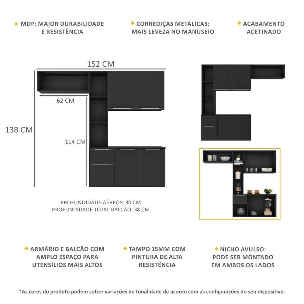Cozinha Compacta com Armário e Balcão MP2002 Sofia Multimóveis Preta