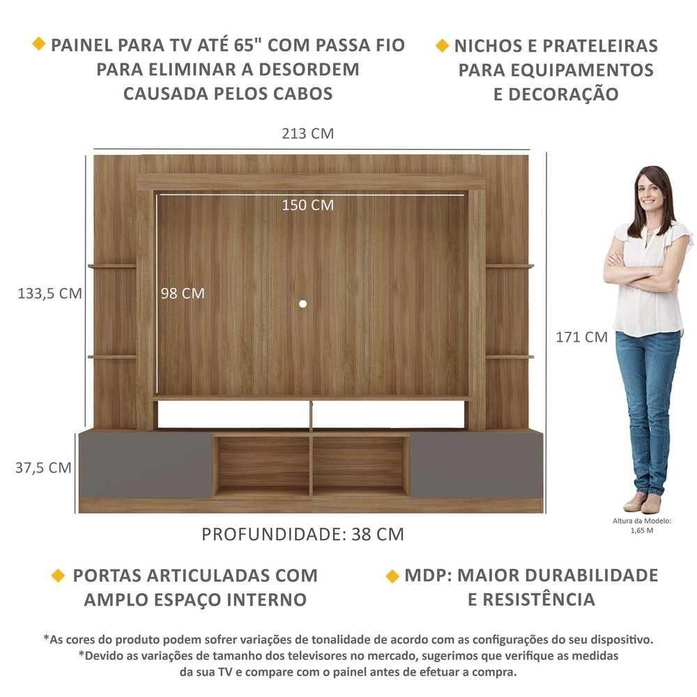 Rack Estante com Painel TV 65" e 2 portas Oslo Multimóveis Madeirado/Lacca Fumê