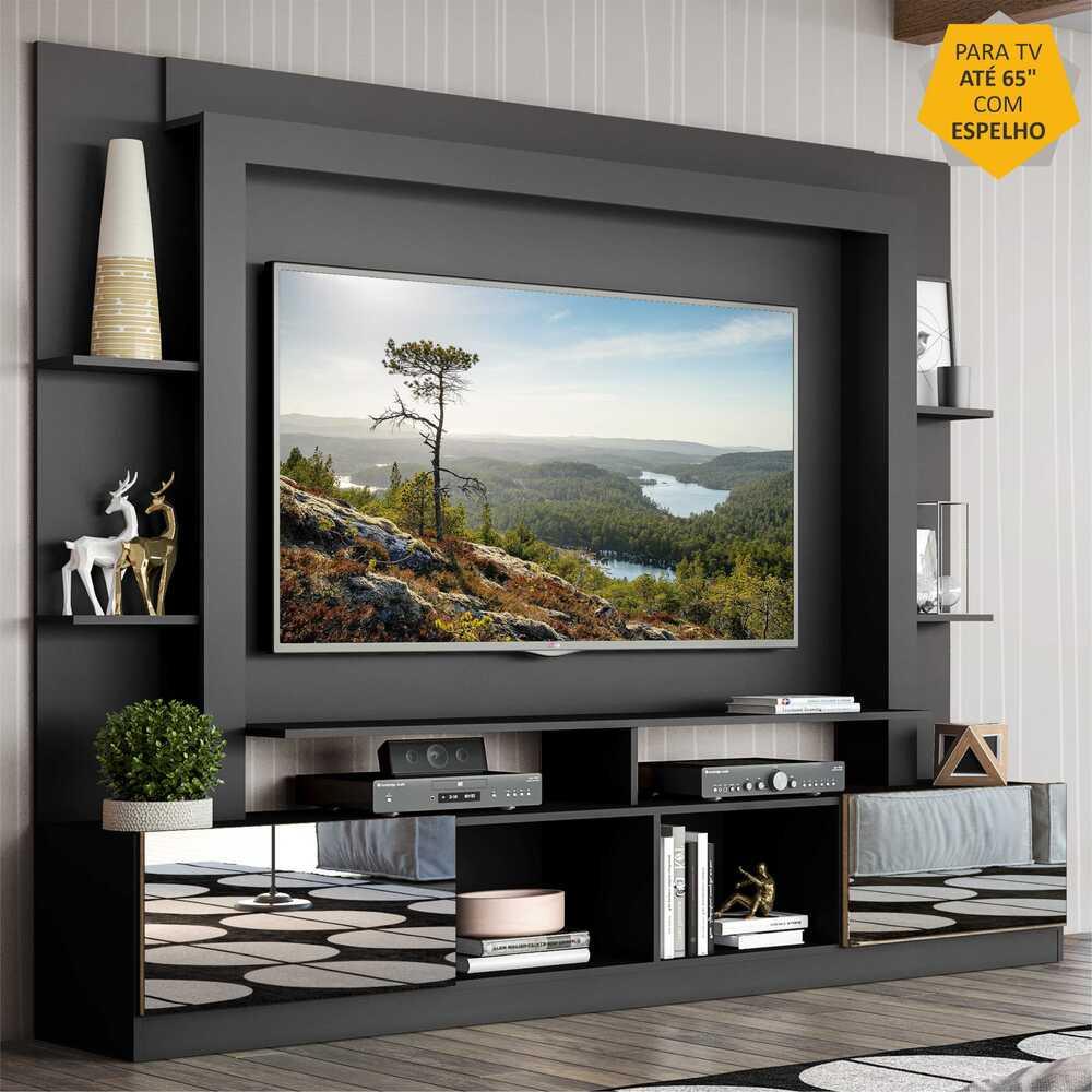 Estante com Espelho para TV até 65" Multimóveis Oslo FG3390 Preta/Madeirada
