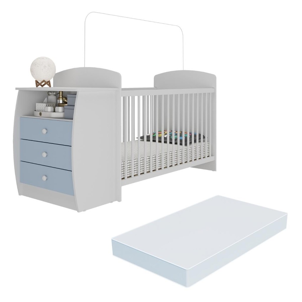 Berço Cômoda com Colchão Incluso Colinho de Mãe Multimóveis Branco/Azul