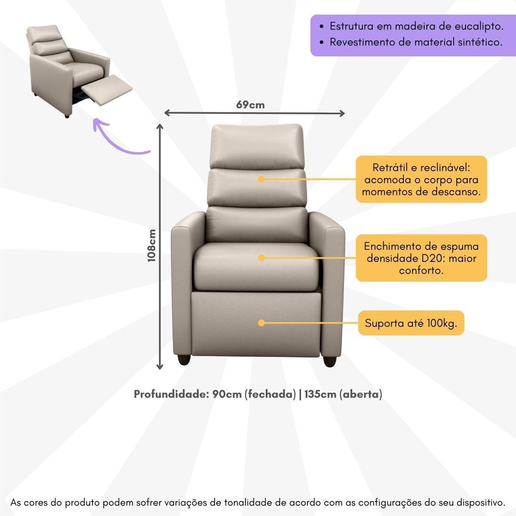 Poltrona Retrátil e Reclinável 69cm com Material Sintético Multimóveis CR45267